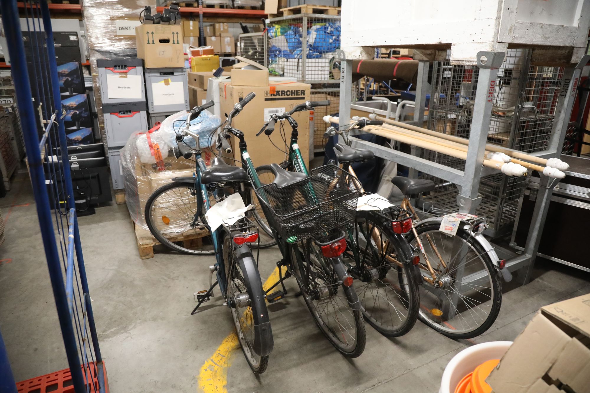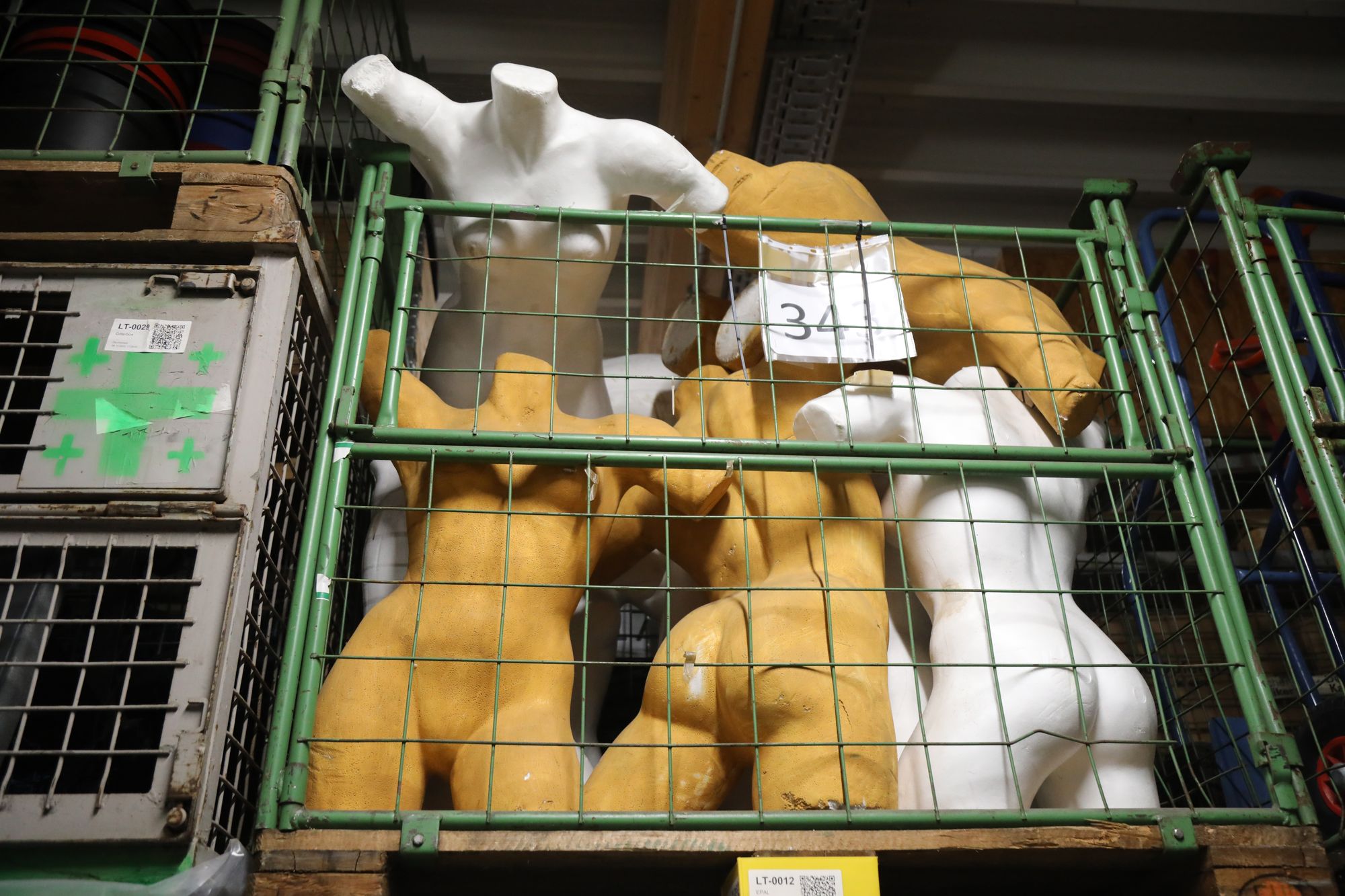 Beim Gang durch die teils über vier Meter hohen Regale fallen auch kuriose Gegenstände auf. Eine Gitterbox mit Schaufensterpuppen etwa. Die brauchte man beispielsweise, um die Kirchentags-T-Shirts auszustellen. „Wir haben sehr viele Sonderartikel, die irgendwann mal benutzt wurden und nun eingelagert sind, zum Beispiel ein 80-Liter-Bowlegefäß in einem Holzrahmen, einen Safe mit einer Geldzählmaschine drauf“, zählt Dahlke-Schawohl auf. „Wir hatten sogar mal einen Sarg“, sagt Anja Ewald. Der sei eigens für eine Veranstaltung von einem Theater ausgeliehen worden. Am skurrilsten sei aber eine Kiste voller Steine gewesen, ergänzt Carsten Ewald: „Was macht man damit?“