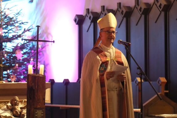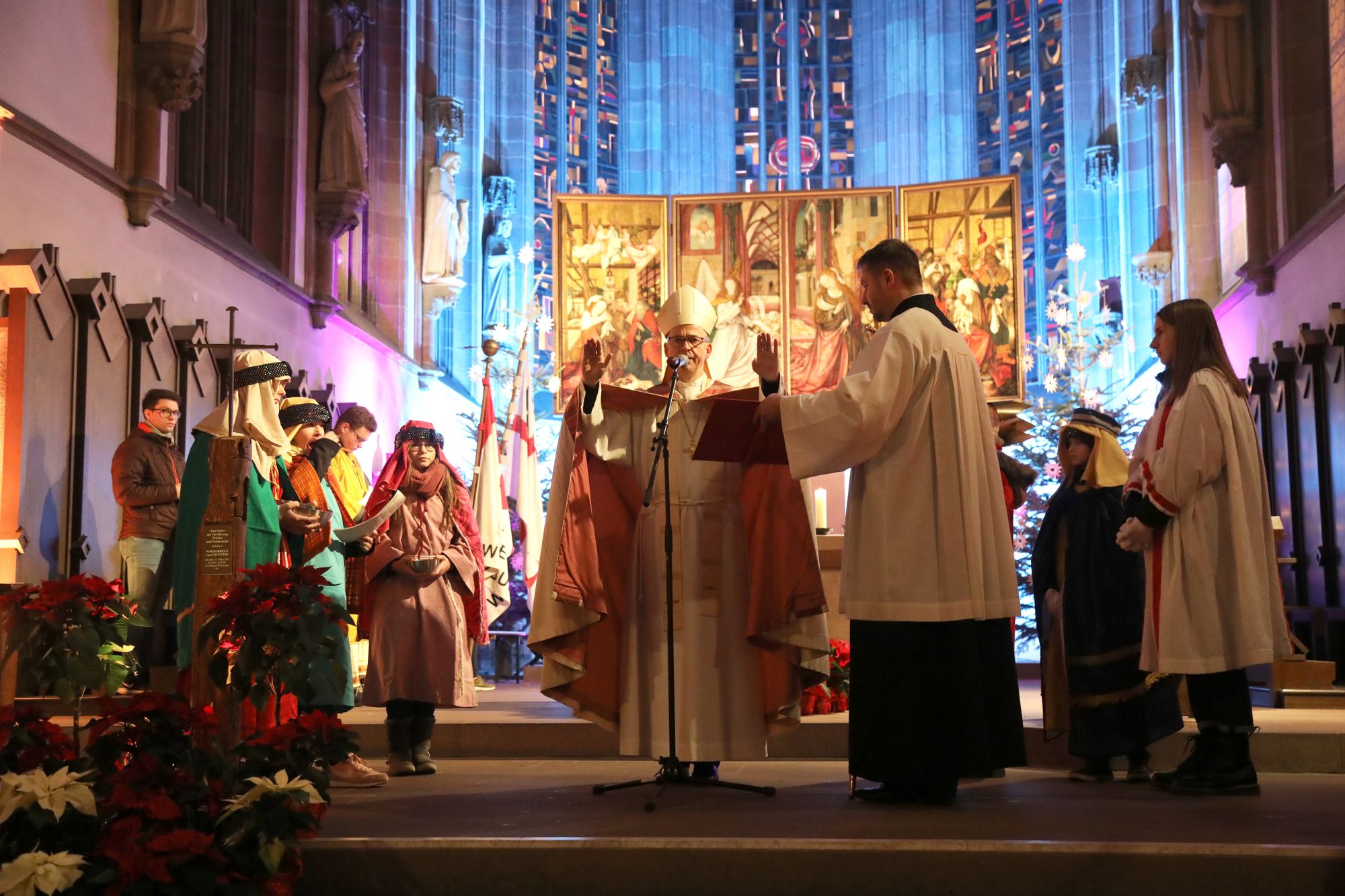 In der Lesung aus dem Buch Jesaja lag der Wolf beim Lamm, der Panther beim Böcklein, Kalb und Löwe weideten miteinander. „Dieses Bild stimmt in der Wirklichkeit eigentlich nie“, sagte Bischof Jung. Mit dem Sündenfall, so sage es die Bibel, sei die Feindschaft zwischen den Geschöpfen gekommen. Doch mit der Geburt Jesu werde diese Feindschaft am Ende geheilt. „Am Ende ist nicht mehr der Kampf ums Überleben und das Überleben der Stärkeren, sondern am Ende leben sie alle miteinander vereint.“ Am Ende bringe jeder – nicht in Gleichmacherei, sondern in einer großen Verschiedenheit – seines ein für die gelungene Gemeinschaft, betonte der Bischof.