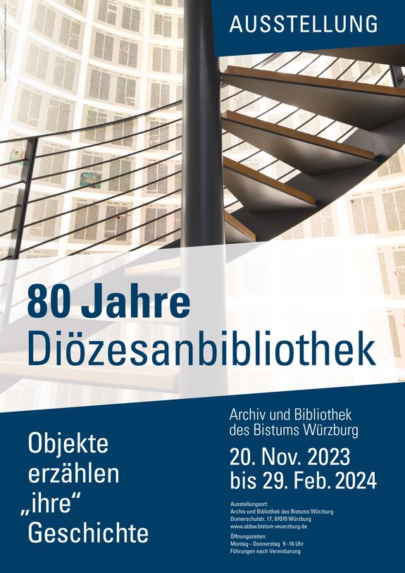 Die Ausstellung „Objekte erzählen ,ihre‘ Geschichte“ ist bis zum 29. Februar 2024 im Foyer von Archiv und Bibliothek des Bistums Würzburg, Domerschulstraße 17 in Würzburg, zu sehen. Öffnungszeiten: montags bis donnerstags von 9 bis 16 Uhr. Anfragen für Führungen per E-Mail an abbw@bistum-wuerzburg.de.