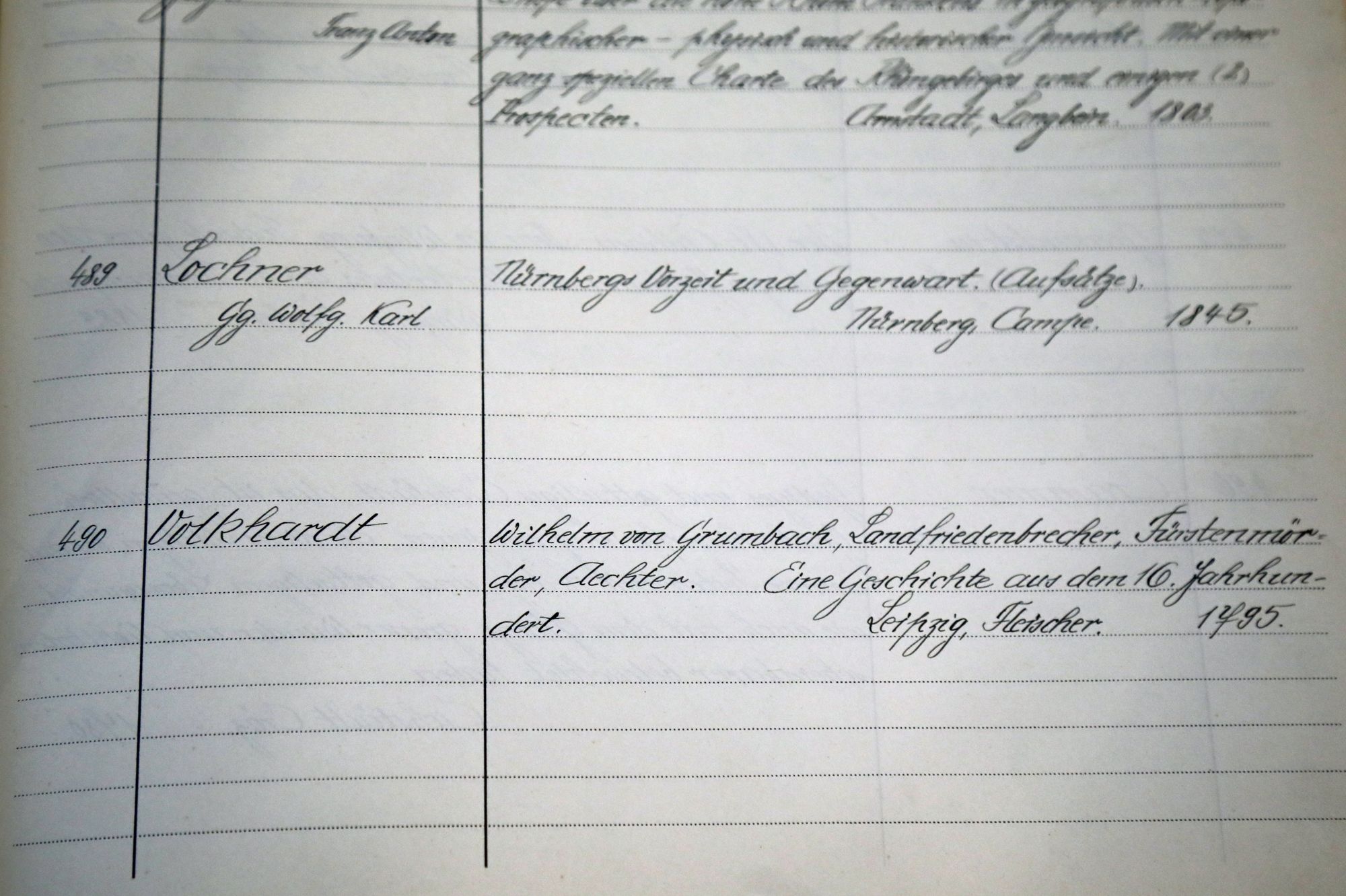 Würzburg (POW) Dem Ungehorsam von Kaplan Robert Kümmert aus Obereschenbach bei Hammelburg ist es zu verdanken, dass Teile der Würzburger Diözesanbibliothek den Bombenangriff vom 16. März 1945 überlebten. Kümmert fuhr gegen Ende des Zweiten Weltkriegs nach Würzburg, um die seiner Ansicht nach bedrohten Kulturschätze des Bistums zu retten. Die Verantwortlichen schickten ihn weg – mit Verweis auf deren sichere Verwahrung. Aus seiner Zeit im Priesterseminar kannte Kümmert noch den „Franconica“-Schrank, der die von Johann Baptist Stamminger (1836-1892) gestiftete gleichnamige Sammlung enthielt. „Er hat den Schrank eigenmächtig ausgeräumt und die Sammlung nach Obereschenbach verlagert. So hat er die Diözesanbibliothek gerettet“, sagt Nikola Willner, Mitarbeiterin in der Abteilung Bibliotheksfachliche Aufgaben in Archiv und Bibliothek des Bistums Würzburg (ABBW). Sie hat die Ausstellung „Objekte erzählen ,ihre‘ Geschichte“ im Foyer von ABBW zusammengestellt, in der man spannende, informative und auch skurrile Geschichten aus der 80-jährigen Geschichte der Diözesanbibliothek entdecken kann.