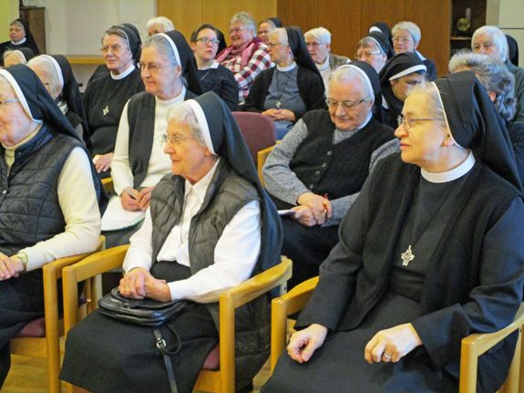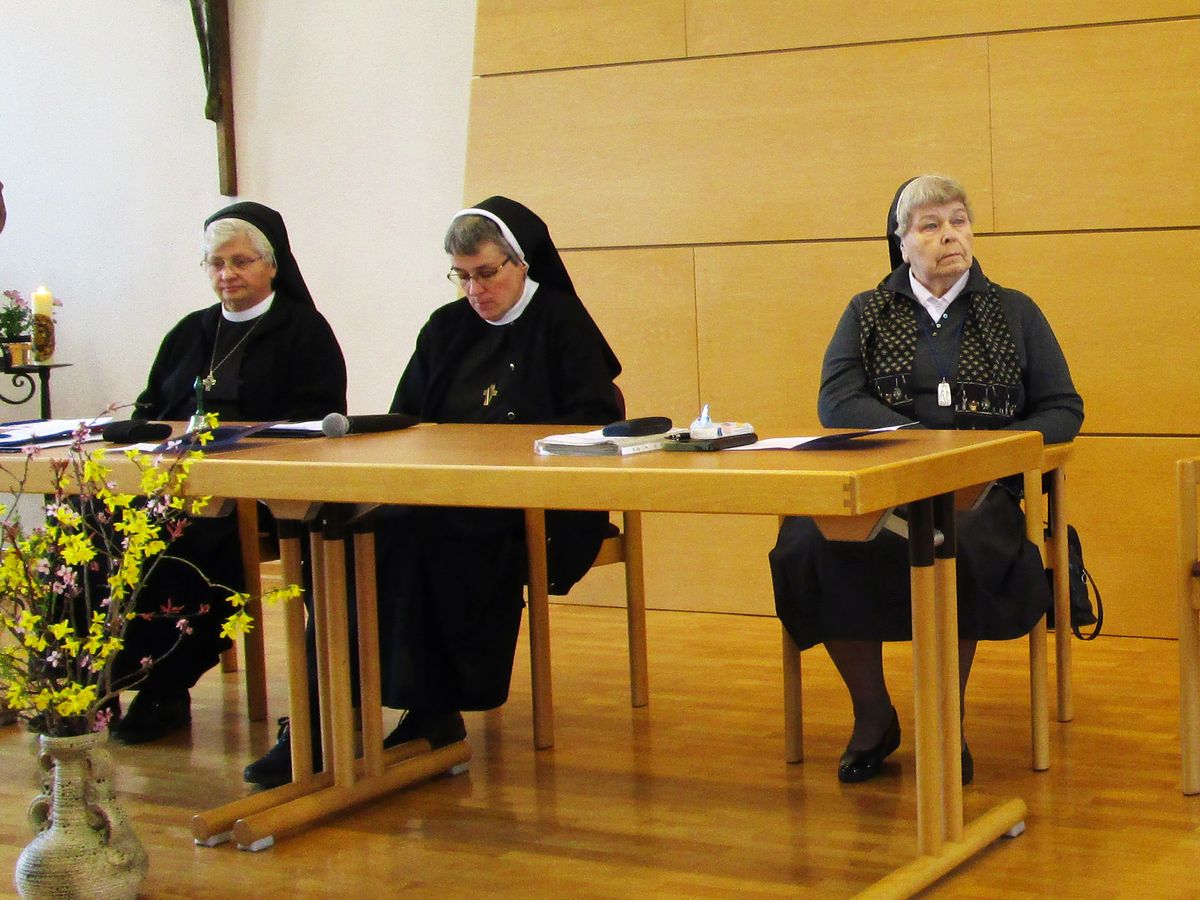 Aus dem Diözesanpastoralrat berichtete Ritaschwester Teresa Reulbach. Dabei ging es vor allem um die Neuordnung und Strukturierung der „Pastoralen Räume“. Es sei eine Tatsache, dass die Zahl der Kirchenmitglieder wie auch die Finanzen bis zum Jahr 2040 immer mehr abnehmen würden. Unter einem Pastoralen Raum sei jedoch nicht eine „riesengroße Pfarrei“ zu verstehen. Vielmehr würden Pfarreiengemeinschaften zusammengefasst, die haupt- und ehrenamtlichen Mitarbeiter vor Ort sollen vermehrt zusammenarbeiten. Es gehe um eine Entwicklung zu mehr Flexibilität, von der Zentralisation zur Dezentralisation, von einem am Amt orientierten zu einem am Charisma orientierten Verständnis. In einem Pastoralen Raum sollen zum Beispiel Aufgaben wie die Firmvorbereitung gebündelt werden. Reulbach bat die Schwestern, diese Prozesse und das Team mit ihrem Gebet zu begleiten, damit die Arbeit gut gemacht werden könne.