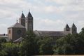 Am östlichen Ortsrand führt der Weg hinunter nach Schwarzenau. „Verlaufen kann sich auf dem Marienweg niemand. Es gibt wohl kaum einen anderen Weg, der so dicht und gut markiert ist“, lobt Treutlein das Team der Markierer. Das kleine blau-weiß-rote Signet mit dem Symbol der Gottesmutter mit dem Jesuskind auf dem Arm ist alle paar Minuten am Wegesrand zu entdecken. Auf dem Radweg wird der Main überquert. Durch die Mainwiesen führt der Weg nach Münsterschwarzach. Hier lädt die große Abteikirche zu einem Stopp ein. Das Marienbild dort hat ein Benediktiner geschnitzt. „Es ist für mich eines der ansprechendsten im Bistum.“ Jenseits der leise plätschernden Schwarzach führt der alte Mönchsweg im Naturschutzgebiet an Fischteichen vorbei zur Wallfahrtskirche Maria de Rosario in Dimbach.