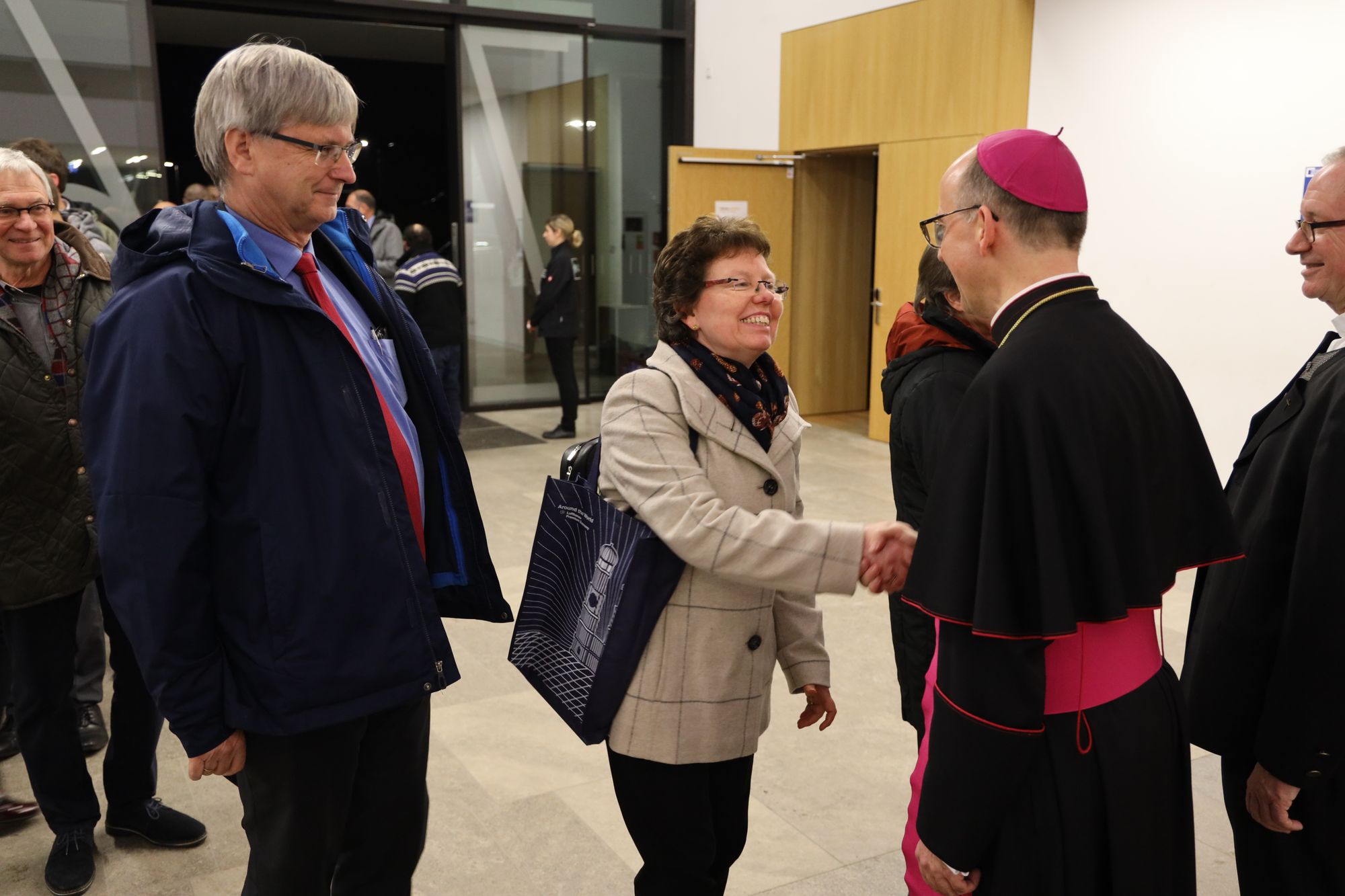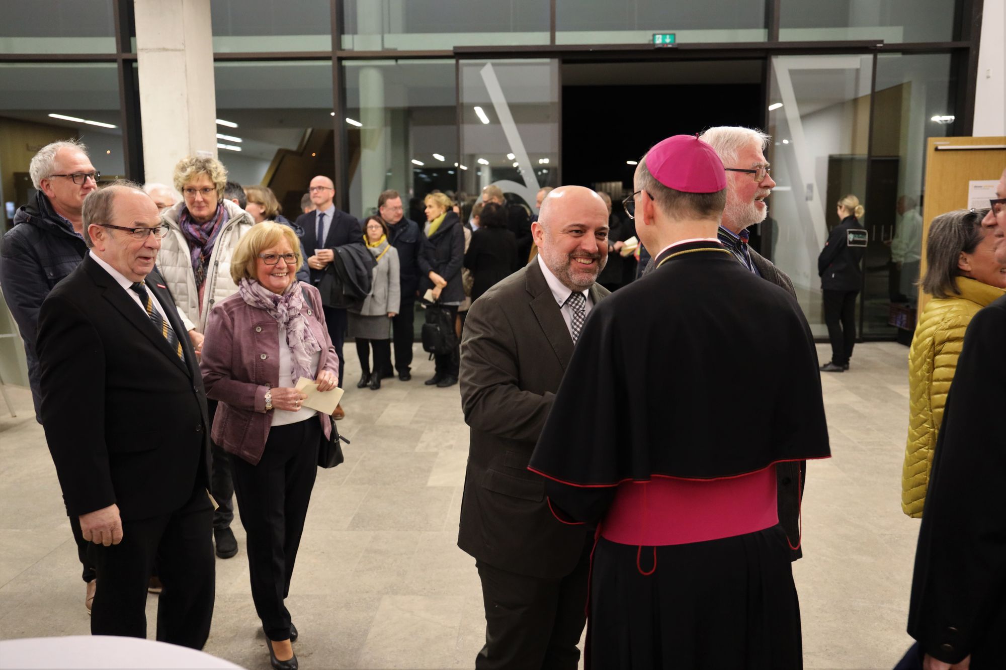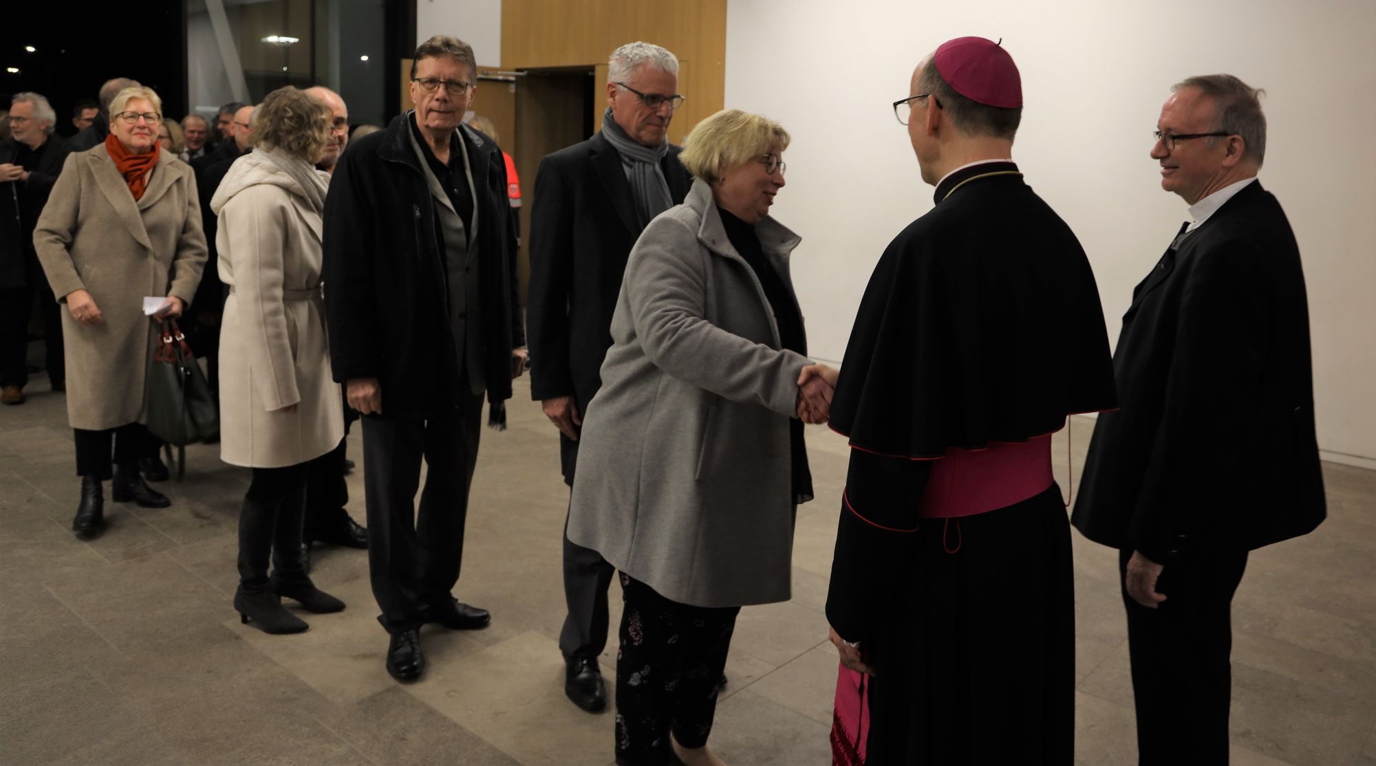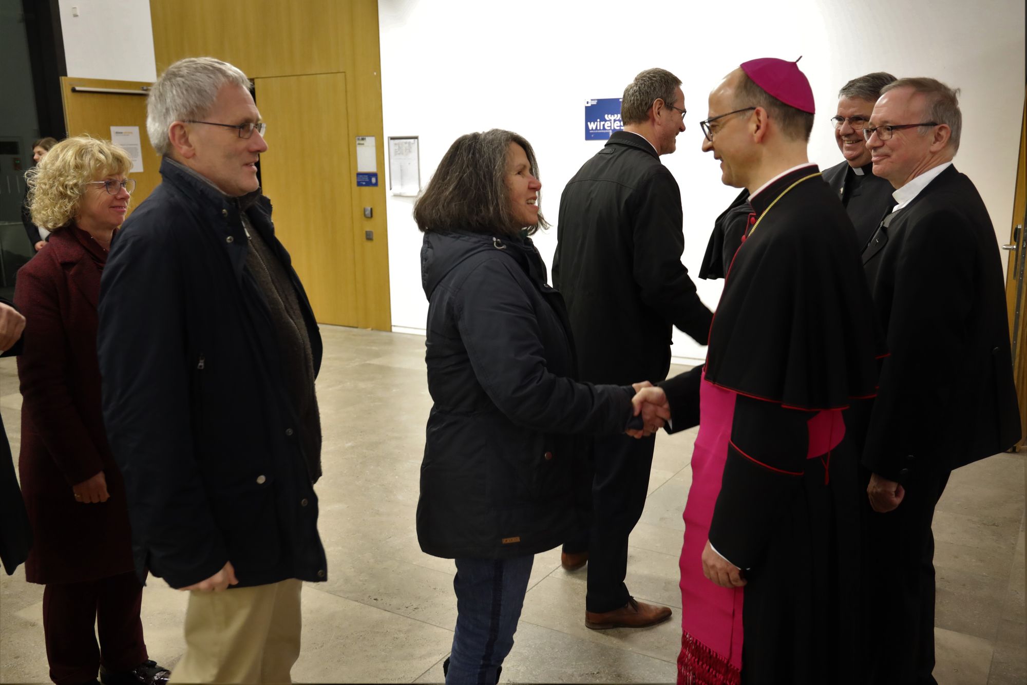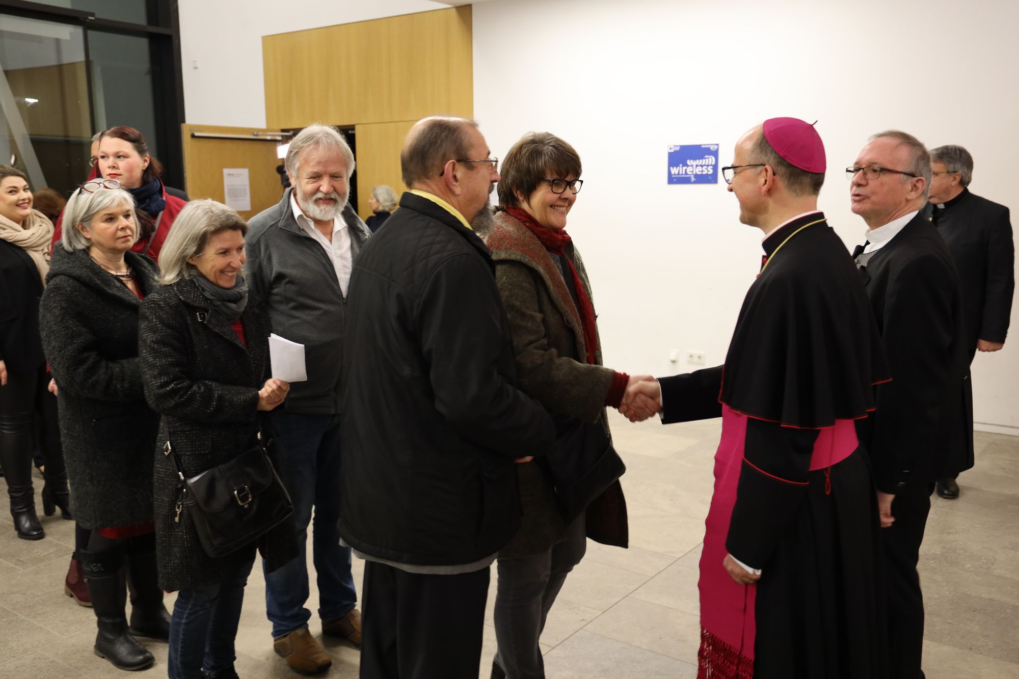 Die Heiligenverehrung in der katholischen Kirche zeige die vielen Nuancen des Heldenbegriffs. Diese spiegelten das Heiligkeitsideal der verschiedenen Epochen der Kirchengeschichte wider – von den Märtyrerinnen und Märtyrern der Alten Kirche über die Kirchenreformer der frühen Neuzeit bis hin zu den heutigen Mystikerinnen und Gottsuchern. „So viele Facetten, wie das Leben hat, so viele Helden der Heiligkeit gibt es.“ Auch das Jahresmotto des Bistums aus dem Epheserbrief passe hier sehr gut: „Die Länge und Breite, die Höhe und Tiefe der Liebe Christi erkennen, die alle Erkenntnis übersteigt.“ Dies umreiße „die vielfältigen Dimensionen gelebter Heiligkeit, die jeder Epoche neu nach allen Seiten hin auszuloten aufgetragen ist“, erläuterte Bischof Jung. Es zeige aber auch die Vielfalt des Engagements der an diesem Abend versammelten Gäste: „Die in der Länge seit vielen Jahren ausdauernd und frohgemut ihren Dienst tun in ihrer Kirchengemeinde und weit darüber hinaus, die repräsentativ die Breite des gesellschaftlichen, religiösen und kirchlichen Engagements abbilden, die auf der Höhe der Zeit ringen um die richtigen Antworten auf die bedrängenden Zukunftsfragen und die Tag für Tag neu in die Tiefe und die Abgründe menschlicher Not und Bedürftigkeit schauen.“