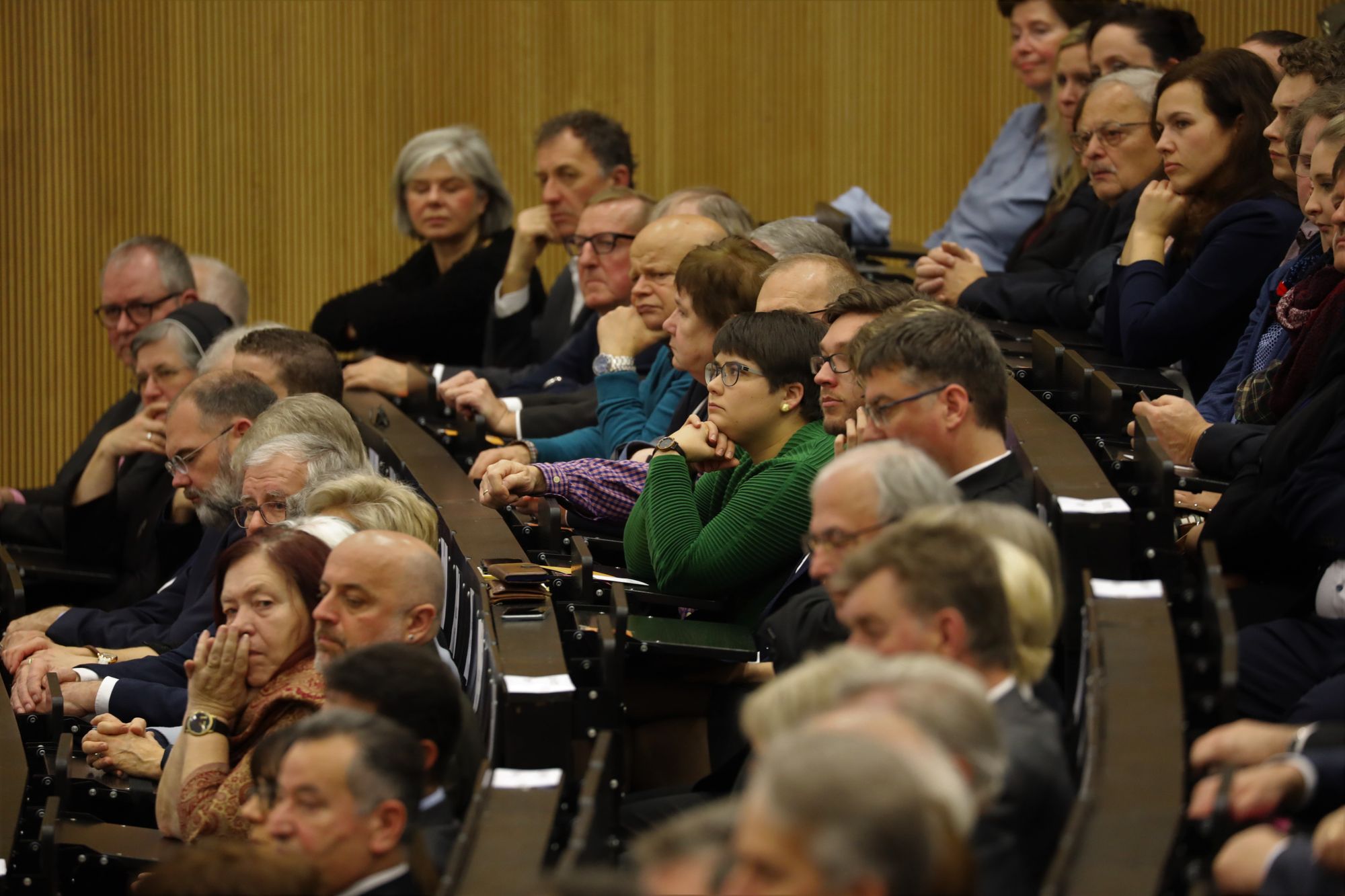 Obwohl eine der „kostbarsten Errungenschaften der Menschheitsgeschichte“, befinde sich die Demokratie derzeit „in ihrer schwersten Krise seit 1945“. Von außen werde sie durch Terroristen, Fundamentalisten, autokratische Regime bedroht. Die zweite Bedrohung sei die Erosion von innen durch das Aufkommen populistischer Parteien. „In der Demokratie brauchen wir zwei Typen von Helden: Helden der Verfassung und Helden der Bewegung“, erklärte der Referent. Helden der Verfassung stünden für die demokratische Ordnung ein und gingen dabei auch über das Erwartbare hinaus – sie bewiesen Zivilcourage. Silvia Kugelmann etwa, Bürgermeisterin des bayerischen Kutzenhausen, habe sich für einen friedlichen Umgang mit Ausländern eingesetzt. Dafür seien an ihrem Auto die Reifen zerstochen worden und sie habe Drohbriefe erhalten. „Sich in dieser Weise in den Sturm zu stellen, ist bewundernswert“, betonte Thomä. Helden der Bewegung wiederum gingen davon aus, dass Demokratie nur durch Wandel Bestand habe. Zu ihnen gehört nach Thomäs Ansicht Edward Snowden. Dieser habe den Schutz der individuellen Freiheit durch die staatliche Überwachung gefährdet gesehen und deshalb das Gesetz durch seinen Geheimnisverrat gebrochen. Greta Thunberg wiederum sei eine „Heldin in der Probezeit“. Sie setze sich zweifelllos für eine große Sache ein. „Wir sollten ihr etwas Zeit lassen, um zu sehen, ob sie den Anfechtungen und der Verehrung gewachsen ist und ob ihre Agenda eine gewisse Nachhaltigkeit entfaltet“, sagte der Referent.