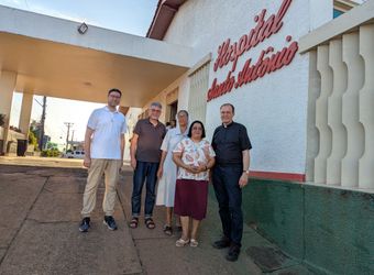 Nach einer Anreise über die Stadt Santarém und einem Besuch beim Orden der Sternschwestern ging es mit dem Schnellboot Richtung Diözese Óbidos. Der erste Stopp war die Pfarrei Alenquer am Amazonas. Dort besichtigte die Delegation ein Krankenhaus und informierte sich über das Gesundheitssystem in Brasilien. In Alenquer stieß auch Bernardo Johannes Bahlmann, Bischof der Partnerdiözese Óbidos, zur Reisegruppe. Weihbischof Reder kennt ihn bereits von früheren Besuchen in Deutschland. Am Abend feierten die beiden mit drei weiteren Priestern einen Gottesdienst mit der Gemeinde Alenquer. Dort wird der heilige Antonius besonders verehrt – ein Heiliger, der im Fall von verloren gegangenen Dingen um Hilfe angerufen wird. Das passte gut zur Delegation. Diese reiste nur mit Handgepäck an, da die Koffer am Frankfurter Flughafen stehengeblieben waren. Aktuell sind sie aber auf dem Weg nach Óbidos.