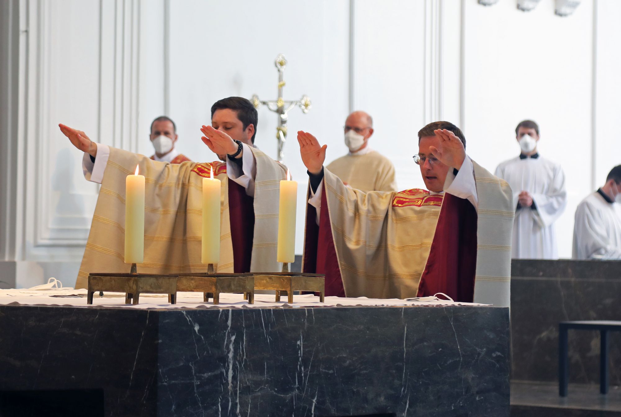 Wenn Jesus dazu mahne, die Hüften zu gürten und das Licht der Lampen zu bewahren, dann mache er auf eine wichtige amtstheologische Unterscheidung aufmerksam: „Das Priesteramt ist ein Amt, das von Gott eingesetzt ist, was aber noch lange nicht bedeutet, dass der Amtsträger selbst damit unfehlbar oder fehlerlos ist.“ Die Heilszusage gelte vielmehr dem Wirken des Amtes, weil Gott durch Menschen hindurch in dieser Welt wirken möchte. Die Amtsträger seien in besonderer Weise verpflichtet, sich um ein christusförmiges Leben zu bemühen, sagte Bischof Jung. Die Weihe sei eine Verpflichtung für das ganze Leben. Deshalb gelte es, die Bereitschaft zum Dienen immer wieder zu erneuern, die Lampen am Brennen zu halten und das Feuer des Geistes nicht auszulöschen: „Wisse jeden Tag neu darum, dass Du als Priester besonders der Erlösung bedarfst.“