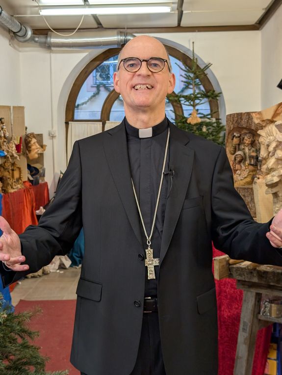 Gedreht wurde sie von der Videoredaktion des Bistums Würzburg in den Arkaden am Rathaus. Dorthin kommt der 80-jährige Holzbildhauer Hans-Joachim Seitfudem, der dort neben Riemenschneiderkopien auch Engel, Heiligenfiguren und zahlreiche Krippen ausstellt, seit 50 Jahren aus seiner oberbayerischen Heimat Bad Kohlgrub in der Adventszeit. Das komplette Video ist im Internet unter www.bistum-wuerzburg.de abrufbar.