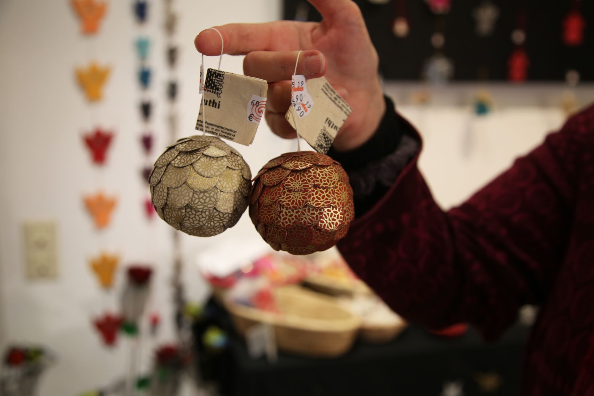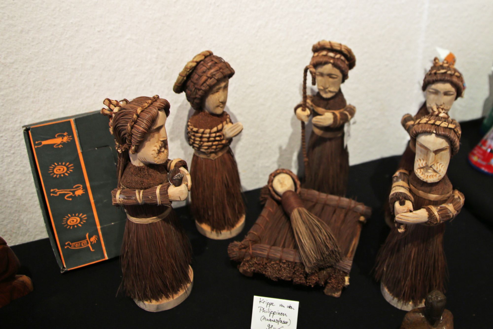 „Wir haben Krippen aus aller Welt“, erklärt Maria Sauter, die seit zehn Jahren für den Weihnachtsmarkt im Weltladen zuständig ist. „Vor allem aus Ländern des Südens – Südamerika, Afrika und Asien.“ Da gibt es eine Keramikkrippe aus Peru, eine aus Ananasfasern von den Philippinen, eine Recycling-Krippe aus Mali oder aber eine Recyclingpapier-Krippe aus Vietnam. „Wir haben ganz viele unterschiedliche Materialien“, erzählt sie. Alle haben zudem ganz verschiedene Stile: mal modern, mal klassisch, mal klein, mal groß. Das wohl kleinste Exemplar ist eine Krippe in der Streichholzschachtel. Die eigne sich gut als ein Geschenk im Adventskalender, berichtet Sauter. Auch der Baumschmuck besteht nicht einfach nur aus Glaskugeln. In diesem Jahr sind zum ersten Mal Kugeln aus handgeschöpftem Papier aus Nepal dabei, genauso wie Glitzersterne aus Indien. Seit Jahren gibt es jedoch einen Favoriten bei den Kunden: Eine Sterngirlande aus Palmblättern aus Bangladesch, die zu den preiswerten Artikeln gehört. Generell seien die günstigeren Produkte beliebt, sagt Sauter.