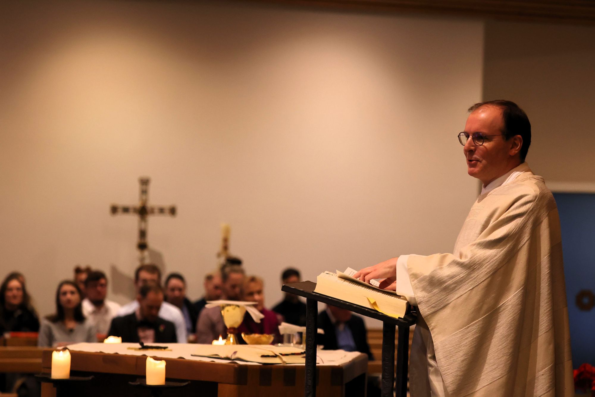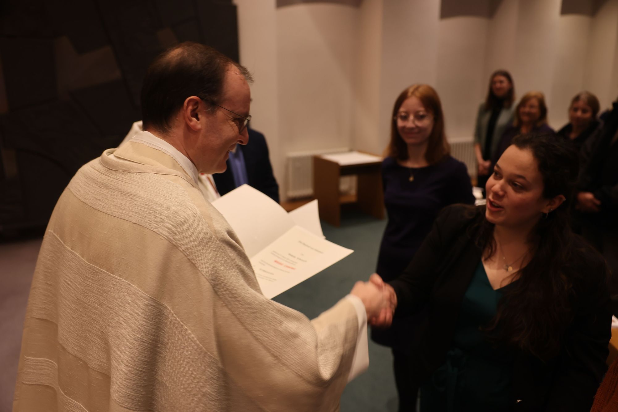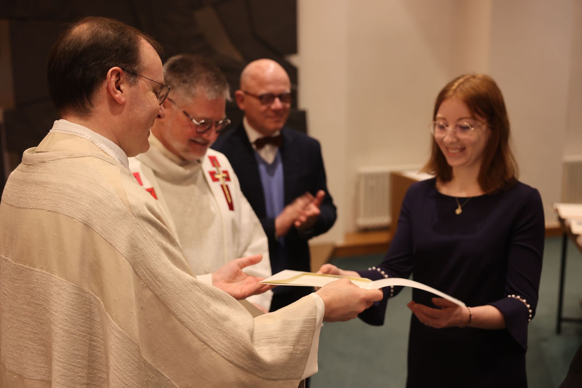 In seiner Predigt schlug der Weihbischof einen Bogen vom aktuellen Heiligen Jahr zur Entscheidung der vier Frauen, sich für das Fach katholische Religionslehre zu qualifizieren. „Ebenso wie wir Jahre und Orte als geprägt erfahren, können auch wir Prägungen erhalten.“ So prägten die Herkunftsfamilie, aber auch das kulturelle Umfeld oder Entwicklungen der Gesellschaft Menschen. Für die Studien- und Berufswahl seien auch Prägungen durch das Fach aus der eigenen Schulzeit maßgeblich. „Seien es positive Erfahrungen, an die wir anknüpfen wollen, oder auch negative, die Motivation sind, es besser zu machen.“
