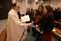 Würzburg (POW) Vier Frauen hat Weihbischof Paul Reder am Freitagnachmittag, 31. Januar, bei einem Gottesdienst in der Hauskapelle des Würzburger Priesterseminars im Auftrag von Bischof Dr. Franz Jung die Missio canonica für das Lehramt an Gymnasien verliehen. „Dass die Übergabe in einem Gottesdienst erfolgt, macht deutlich, dass es nicht nur um einen Verwaltungsakt geht. Die Übergabe der Urkunde ist gleichzeitig das, was die Überschrift besagt: Missio – eine Sendung“, sagte der Weihbischof. Die kirchliche Erlaubnis, katholischen Religionsunterricht zu erteilen, erhielten die Referendarinnen Katharina Fey, Victoria Knaup, Theresa Winter und Tabea Vornberger vom Würzburger Matthias-Grünewald-Gymnasium. An dem Gottesdienst nahmen neben Ordinariatsrätin Dr. Christine Schrappe, Leiterin der Hauptabteilung Bildung und Kultur, und Jürgen Engel, leitender Schulamtsdirektor im Kirchendienst, auch der Seminarlehrer Studiendirektor Peter Herrmann (Matthias-Grünewald-Gymnasium) sowie Eltern und Freunde der Beauftragten teil.