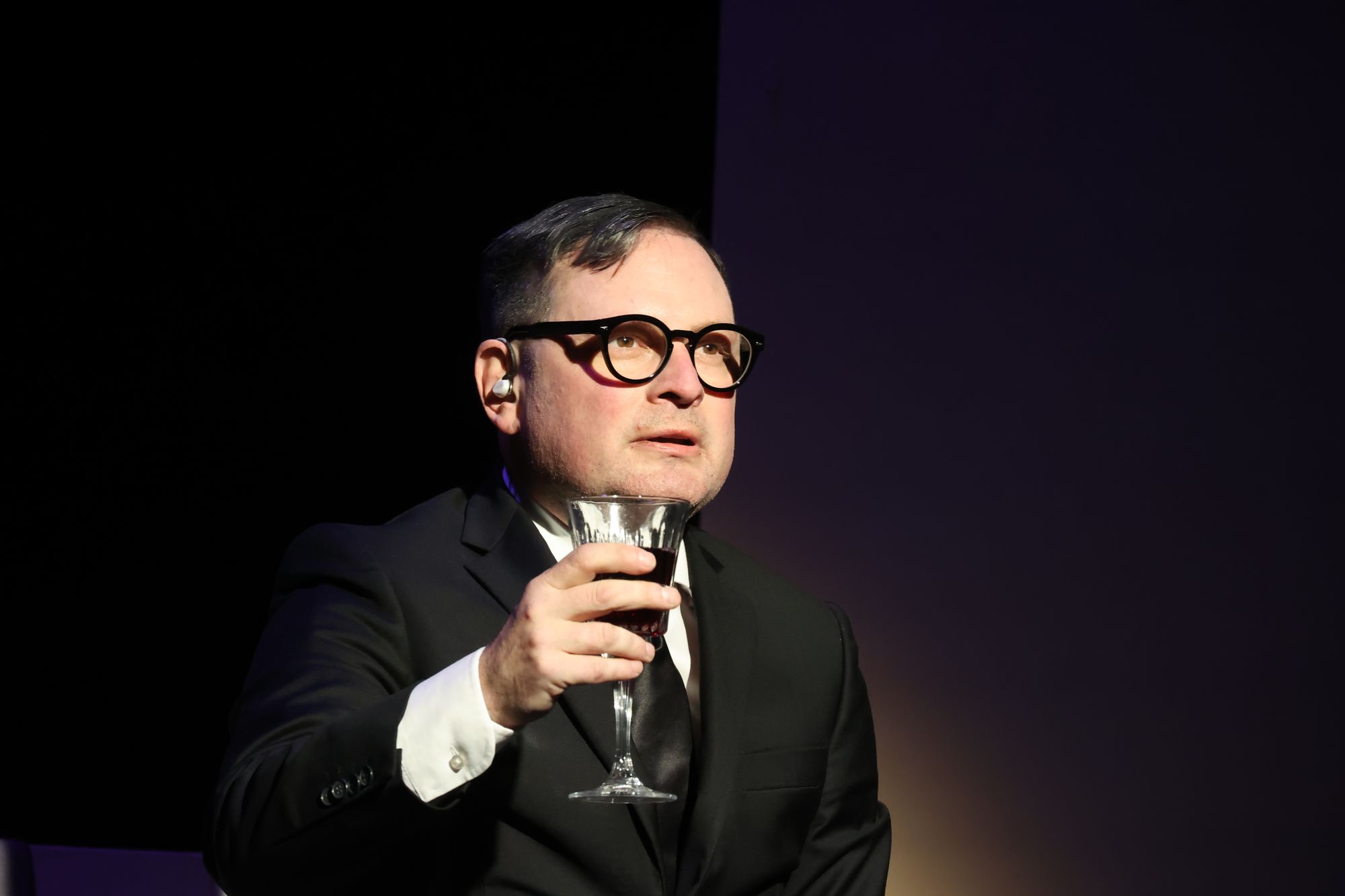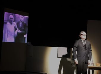 „Eher zufällig“ sei er in die SS geraten, sagt er in dem Stück. Obwohl die NSDAP, das gibt er zu, doch für einen Nationalismus steht, „der mir zusagte“. Wie überzeugt er tatsächlich das System stärkte, zeigen mehrere kurze Einspielfilme, technisch auf Wochenschau-Schwarz-weiß und Flackern getrimmt. Darin faltet Eichmann unter anderem einen SS-Mann am Telefon zusammen. Einen ganzen Transport von Juden aus Frankreich einfach ausfallen zu lassen? „Ausgesprochen blamabel.“