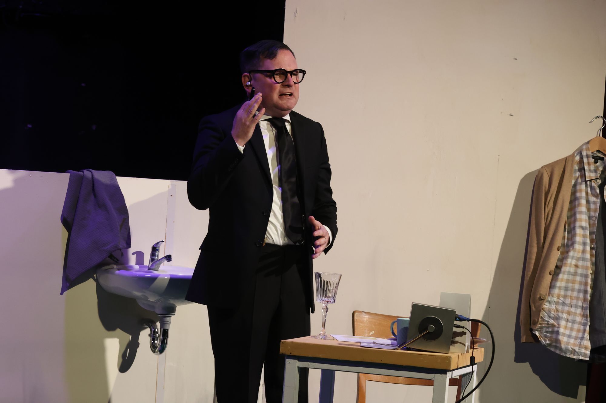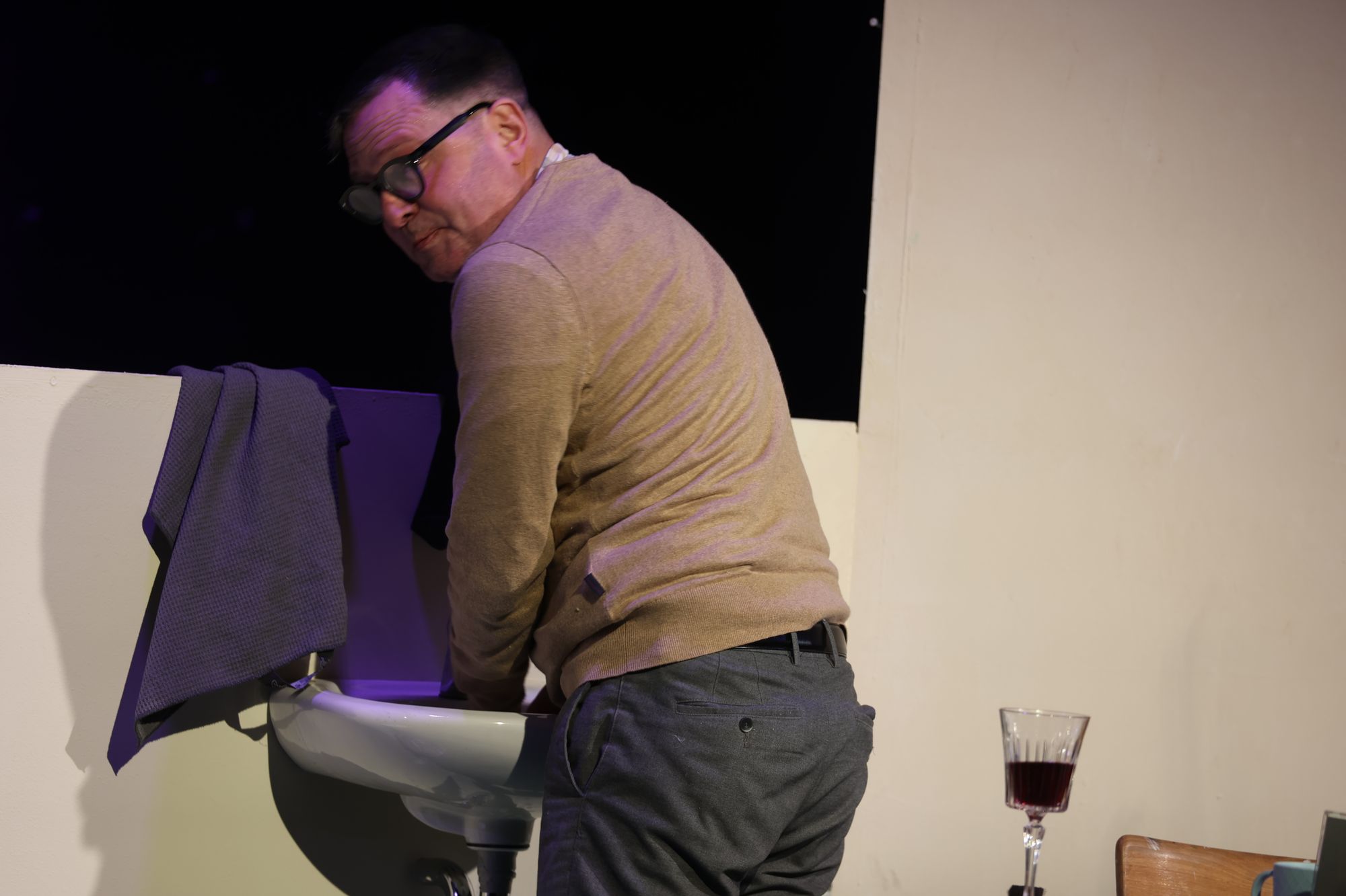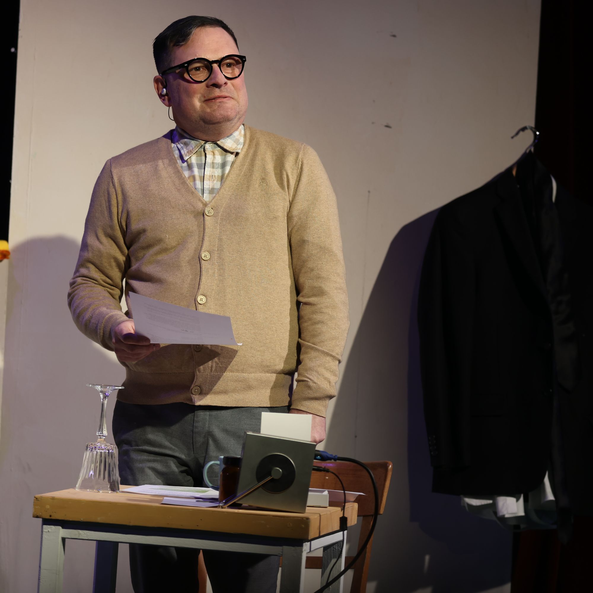 Würzburg (POW) „Ich habe nichts Unrechtes getan.“ Wie ein Mantra sagt Adolf Eichmann, einst Obersturmbannführer der SS und einer der Organisatoren der Schoah, diesen Satz immer wieder. Kariertes Hemd, schwarze Hornbrille, hellbraune Strickjacke, strenger Scheitel. Bieder und unscheinbar. Am Abend vor seiner Exekution sitzt er in dem 1993 von Andreas Gruhn verfassten Monolog in Jerusalem in der Zelle. Dorthin haben ihn 1960 israelische Agenten aus Argentinien entführt. In das südamerikanische Land war Eichmann wie weitere Nationalsozialisten nach Kriegsende geflohen.
