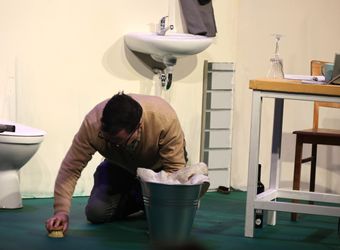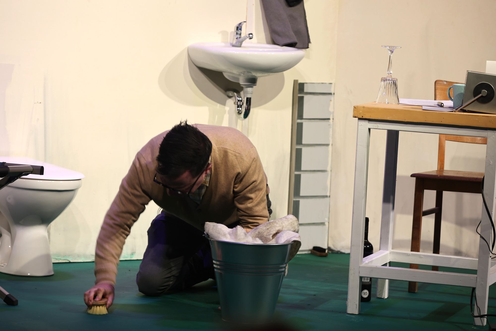 Jedoch erzählt er selbst, während er fast manisch den Boden der Haftzelle oder seine Toilette schrubbt, dass er es selbst nicht ertragen habe, als er zum Beispiel Zeuge der ersten systematischen Erschießungen – vom Kleinkind bis zum Greis – in der Nähe von Minsk wurde. Nicht, weil die Bilder so grausam sind. Er findet das Vorgehen nur nicht besonders effektiv. Gleich zu Beginn wird deutlich, dass er einem einfachen Feindbild anhängt. Er vermeint, unter dem Zellenboden den Ruf einer Kammratte zu hören, und sinniert: „Eine Ratte? Kein Problem. Aber ein ganzes Volk davon?“