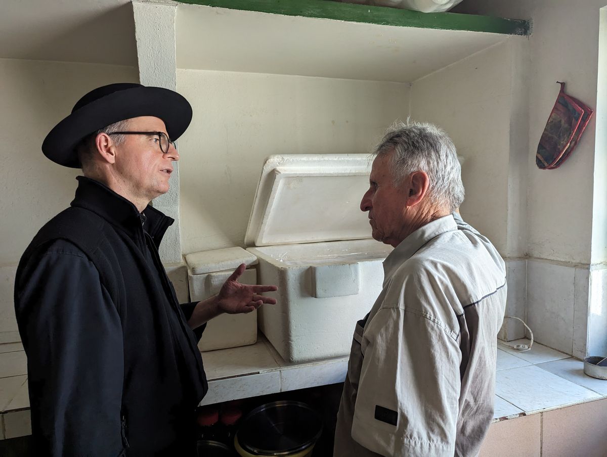 Cochabamba/Eibelstadt (POW) Pater Max Wolfgang Schiller hat mit der Delegation aus Deutschland etwas Besonderes vor: Er will auf den Markt „La Cancha“ in Cochabamba. Ein riesiger Markt, der online als „Mit Vorsicht zu genießen“ beschrieben wird. Bunt und vielfältig ist er, aber es sind auch Taschendiebe unterwegs. Überall sind Verkaufsstände für Lebensmittel wie frisches Obst und Gemüse, aber auch Haushaltsgegenstände. Eigentlich gibt es dort alles. Der 81-Jährige läuft zielstrebig durch den Markt. Erster Stopp ist ein Stand, an dem zwei seiner Mitbrüder Joghurt verkaufen. Gezuckert und ungezuckert, mit verschiedenen Toppings zum Essen auf die Hand. Den Joghurt stellen die Brüder selbst in ihrem Haus in Cochabamba her. Es ist eine Einnahmequelle der „Kleinen Brüder“ – so heißt der Orden, zu dem Schiller gehört.
