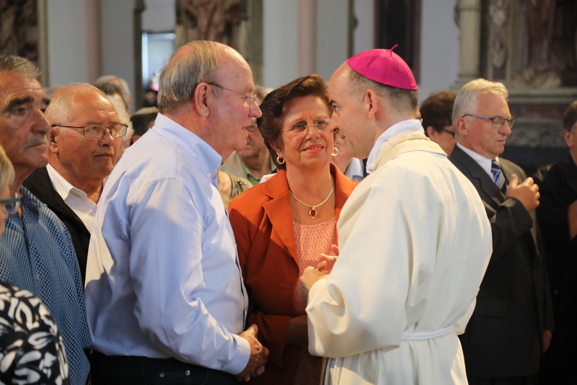 Viel Lob für Bischof Jung hatten Karola (68) und Gregor Reinhart (70) aus Bad Neustadt parat. „Bevor er uns nach dem Gottesdienst einzeln gesegnet hat, habe ich ihm für seine ökumenische Offenheit gedankt. Ich habe ihm aber auch gleich gesagt, dass er mit den deutschen Bischöfen mal zusehen soll, dass beim Thema Diakonat der Frau nach 20 Jahren endlich mal etwas vorwärts geht“, sagte Karola Reinhart. Einen besonderen Tipp für eine glückliche Ehe hatte ihr Mann in petto: „Man muss den Partner immer wieder neu annehmen und sich dabei bewusst machen, was das ist, was ihn am Anfang der Beziehung als besonders liebenswert ausgezeichnet hat.“