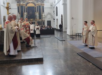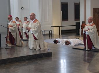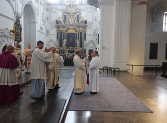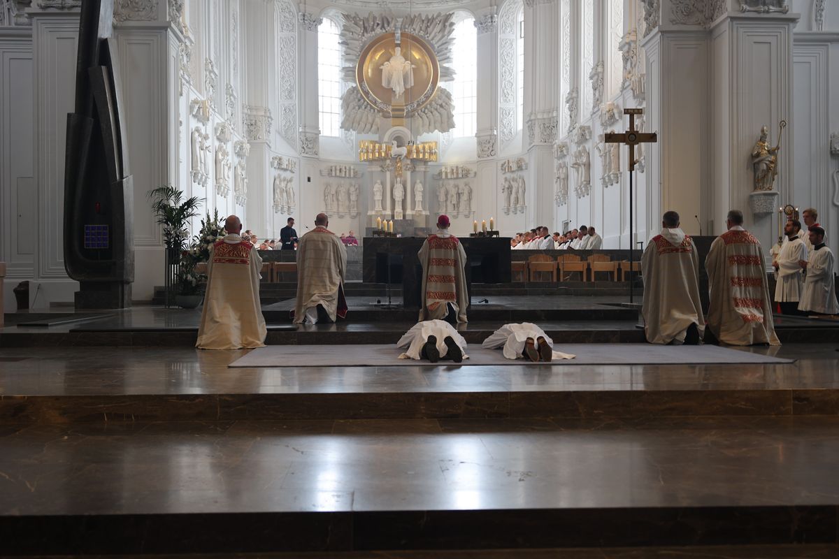 Bischof Dr. Franz Jung hat am Samstag, 28. September, Dr. Andy Theuer und Ansgar Kehrer im Würzburger Kilansdom zu Diakonen geweiht.