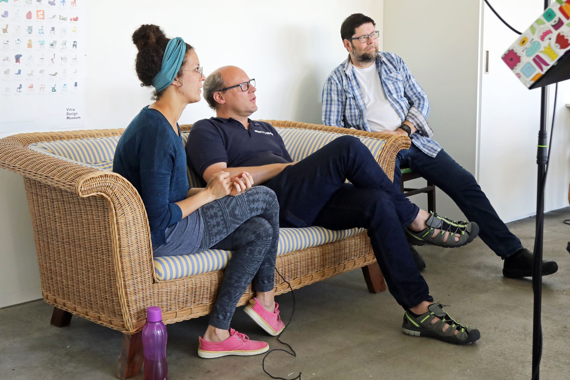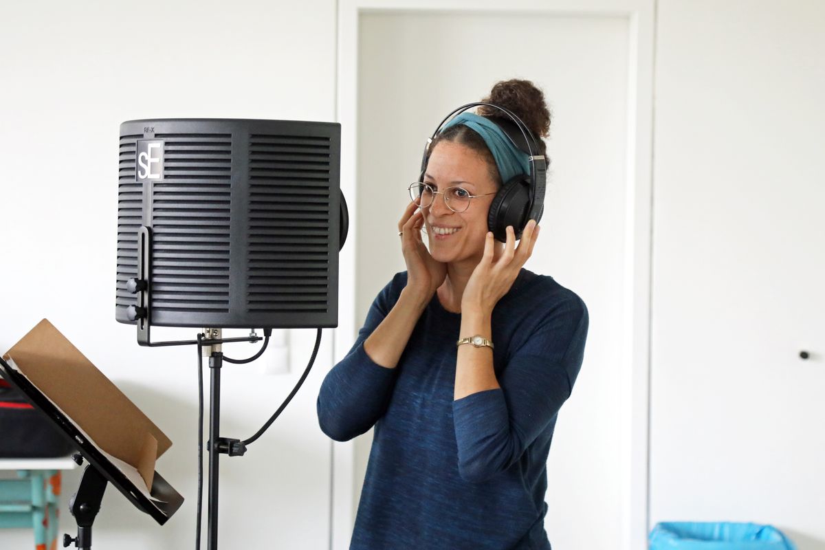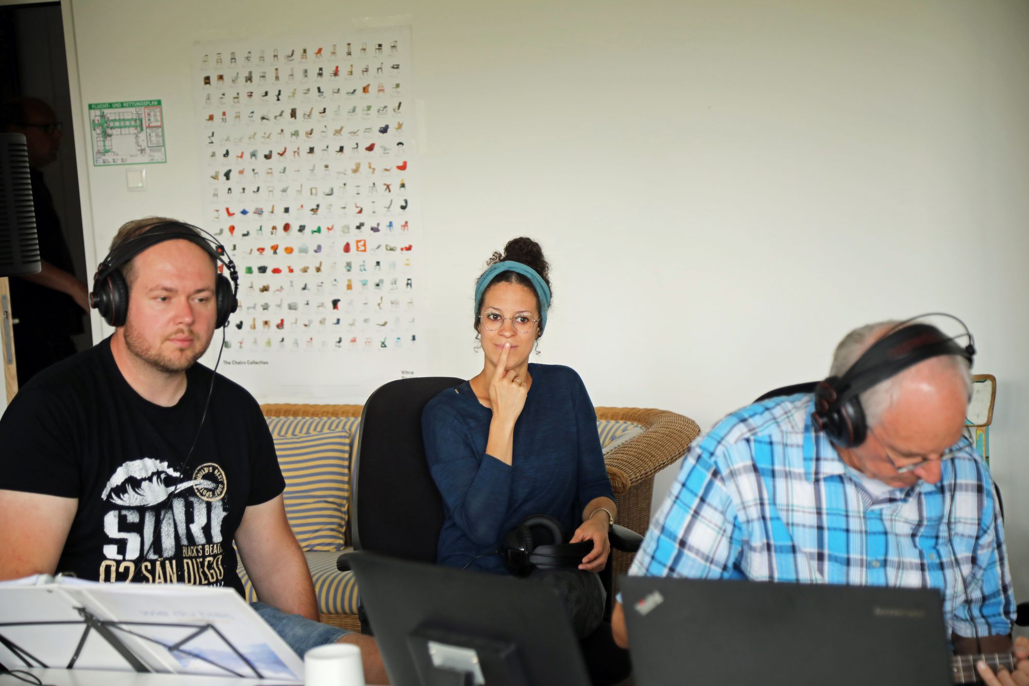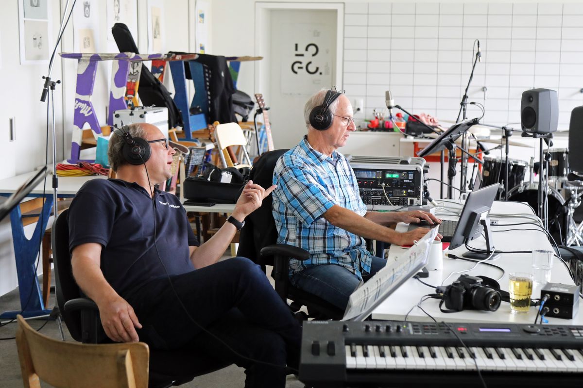 Die Aufnahmen folgen keinem strikten Plan. „Das, worauf man gerade am meisten Lust hat, fällt am leichtesten“, sagt Matthias Gahr. Für „Sommerleicht“ etwa will Susanne Scherer noch eine zweite Stimme für den Refrain einsingen. Sie setzt ihre Kopfhörer auf und stellt sich ganz nahe an das Mikrofon. Konzentriert lauscht sie auf die bislang aufgenommenen Tonspuren, darunter auch ihre eigene Stimme. Ihr ganzer Körper wippt im Takt. Dann setzt sie mit leicht jazziger Stimme beim Refrain ein: „Und ich fühl mich sommerleicht – alles Schwere in mir weicht – nur blau, soweit der Himmel reicht – wolkenlos und sommerleicht.“ Zweimal hintereinander. Sie nimmt die Kopfhörer ab und sieht ihre Bandkollegen mit einem fragenden Lächeln an. Die sind begeistert – alles perfekt.