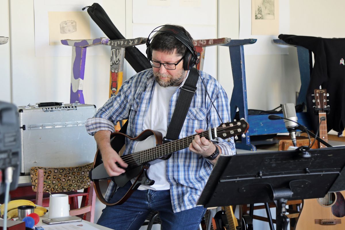 Münsterschwarzach/Würzburg (POW) „A-Dur – E-Dur – H-Moll – D-Dur“. Seit Minuten spielt Rolf Wenner nur diese vier Akkorde auf der Gitarre. Sein Blick schweift vom Notenständer nach rechts zu Gerhard Barth am Mischpult, aus den bodentiefen Fenstern hinaus in die Ferne und wieder zurück auf den Notenständer. Außer der Gitarre ist kein Laut zu hören. Die übrigen Mitglieder der Band „Sternallee“ – Susanne Scherer (Gesang), Matthias Gahr (Texter, Komponist, Keyboards, Gesang) und Sebastian Volk (Drums, Percussion) – hören über Kopfhörer mit. Michael Aust (Bass, Technik, Gesang) kommt heute etwas später. Nach dem letzten Ton ist für einen Moment Stille. „Das hast Du sehr sauber durchgespielt, ich hätte schon längst die Flinte ins Korn geworfen“, sagt Matthias Gahr beeindruckt. „Das ist wie Lagerfeuer früh um drei“, kommt es von Sebastian Volk, der tiefenentspannt auf einem Drehstuhl sitzt. Die Gitarrenspur für den Song „Sommerleicht“ ist fertig. Ende 2021 wird die neue CD von „Sternallee“ mit dem Titel „wie du bist“ mit insgesamt 13 neuen Liedern erscheinen.