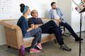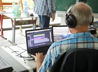 Die Aufnahmen folgen keinem strikten Plan. „Das, worauf man gerade am meisten Lust hat, fällt am leichtesten“, sagt Matthias Gahr. Für „Sommerleicht“ etwa will Susanne Scherer noch eine zweite Stimme für den Refrain einsingen. Sie setzt ihre Kopfhörer auf und stellt sich ganz nahe an das Mikrofon. Konzentriert lauscht sie auf die bislang aufgenommenen Tonspuren, darunter auch ihre eigene Stimme. Ihr ganzer Körper wippt im Takt. Dann setzt sie mit leicht jazziger Stimme beim Refrain ein: „Und ich fühl mich sommerleicht – alles Schwere in mir weicht – nur blau, soweit der Himmel reicht – wolkenlos und sommerleicht.“ Zweimal hintereinander. Sie nimmt die Kopfhörer ab und sieht ihre Bandkollegen mit einem fragenden Lächeln an. Die sind begeistert – alles perfekt.