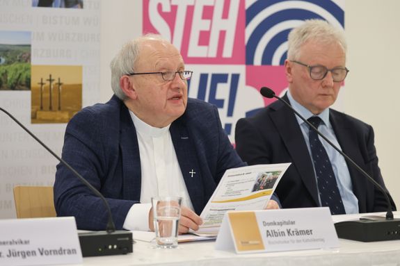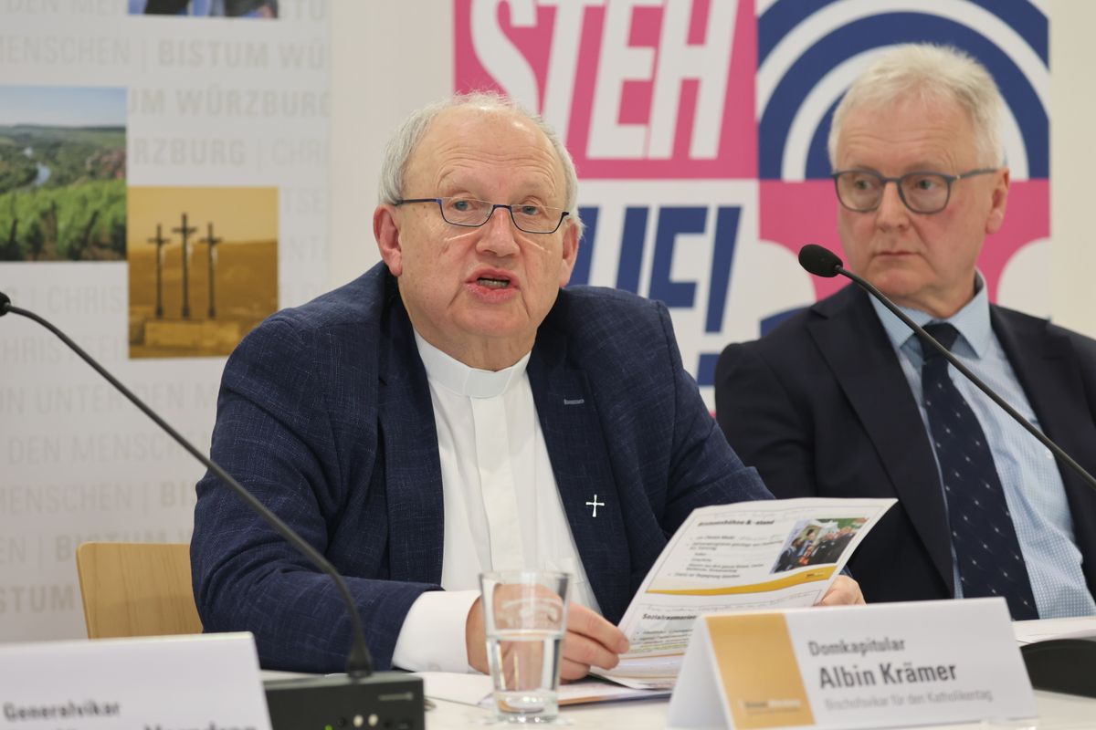 Würzburg (POW) Einen Ausblick auf das Programm des 104. Deutschen Katholikentags hat Domkapitular Albin Krämer, Bischofsvikar für den Katholikentag, bei der Pressekonferenz zum Jahresauftakt am Mittwoch, 28. Januar, im Würzburger Burkardushaus gegeben. Die kirchliche Großveranstaltung findet vom 13. bis 17. Mai in Würzburg statt. „Wir freuen uns als Bistum auf die Tage des Katholikentags, auf die vielfältigen Orte der Begegnung, die ermutigen, auf ein Fest des Glaubens mit Tiefendimension, das uns Hoffnung gibt, hier und heute Gesellschaft und Kirche mitzugestalten und in einem guten Miteinander auf dem Weg in die Zukunft zu sein“, sagte der Bischofsvikar.