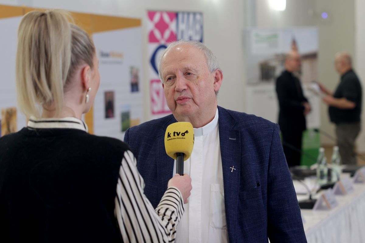 Das Bistum wird während des gesamten Katholikentags mit einer Bühne und einem Stand am Oberen Markt vertreten sein. Am Stand könne man Akteuren aus dem ganzen Bistum, von Caritas und Weltkirche sowie der Bistumsleitung begegnen. Krämer kündigte zwei inhaltliche Schwerpunkte an. So werde es zum einen 16 Veranstaltungen zum Thema „Sozialraumorientierung“ geben. Als Beispiel nannte er „Dönerbude, Bushäuschen, Kirche“ mit Bischof Dr. Franz Jung sowie „Bahnhofsgeschichten vom Ankommen, Bleiben und Weitergehen“. „Wir erhoffen uns davon Impulse über den Katholikentag hinaus: Kirche sichtbar machen als offenes Netzwerk, das Brücken baut zwischen verschiedenen gesellschaftlichen Akteuren, Glauben und Alltag.“ Der zweite Schwerpunkt werde die „Demokratiekirche“ in der Marienkapelle sein. Krämer beschrieb sie als einen „Kirchenraum als Labor für die starke Zivilgesellschaft mit Fragen wie: Wie könne die Kirchen Räume des Zuhörens, der Begegnung und der Orientierung stärken, und was kann gesellschaftliches Engagement für die Demokratie bewirken?“