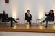 Dr. Dietmar Kretz (2. von rechts) von der Domschule Würzburg am Ende der Veranstaltung im Gespräch mit den Professoren Dr. Hartmut Rosa (2. von links) und Dr. Jörn Müller (links).