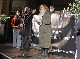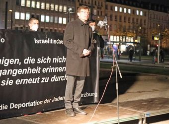 „Es ist eine Schande, dass Jüdinnen und Juden heute wieder um ihr Leben fürchten müssen“, sagte Oberbürgermeister Christian Schuchardt. Im Jahr 2020 habe es 57 Gewalttaten gegen Juden und jüdische Einrichtungen gegeben mit 29 Verletzten. Der Antisemitismus trete „immer unverschämter“ öffentlich in Erscheinung und erhalte Auftrieb durch die Coronapandemie. Verschwörungstheoretiker zögen „absolut unerträgliche“ Vergleiche zwischen den Coronamaßnahmen und der NS-Rassenpolitik. Die Stadt Würzburg werde alles tun, um Versammlungen zu untersagen, bei denen Symbole verwendet werden, die an die gelben Sterne der NS-Zeit erinnern. „Lassen Sie uns gemeinsam einstehen für eine uneingeschränkte Achtung der Würde ausnahmslos aller Menschen. Lassen Sie uns eine offene, tolerante und friedliche Stadtgesellschaft verwirklichen. Unser Gedenken darf nicht folgenlos sein.“
