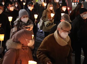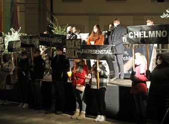 Würzburg (POW) „Jedes Jahr gehen wir diesen Weg mit Beklemmung und Trauer.“ Mit bewegenden Worten hat Dr. Josef Schuster, Vorsitzender des Zentralrats der Juden in Deutschland, an die erste Deportation von Juden aus Würzburg im Jahr 1941 erinnert. Gemeinsam mit weiteren Rednern warnte er am Donnerstagabend, 25. November, vor dem Wiedererstarken des Antisemitismus in Deutschland. Die Gedenkfeier unter Coronabeschränkungen begann in diesem Jahr am Bahnhofsplatz, in Sichtweite des „DenkOrts Deportationen“, der zentralen Gedenkstätte für die deportierten und ermordeten unterfränkischen Juden. Von dort zogen rund 100 Menschen mit Kerzen in den Händen durch die Innenstadt – über Kaiserstraße, Schönbornstraße und Domstraße – bis zum Rathaushof. Organisiert wurde die Veranstaltung von der Gemeinschaft Sant’Egidio und der Israelitischen Kultusgemeinde.