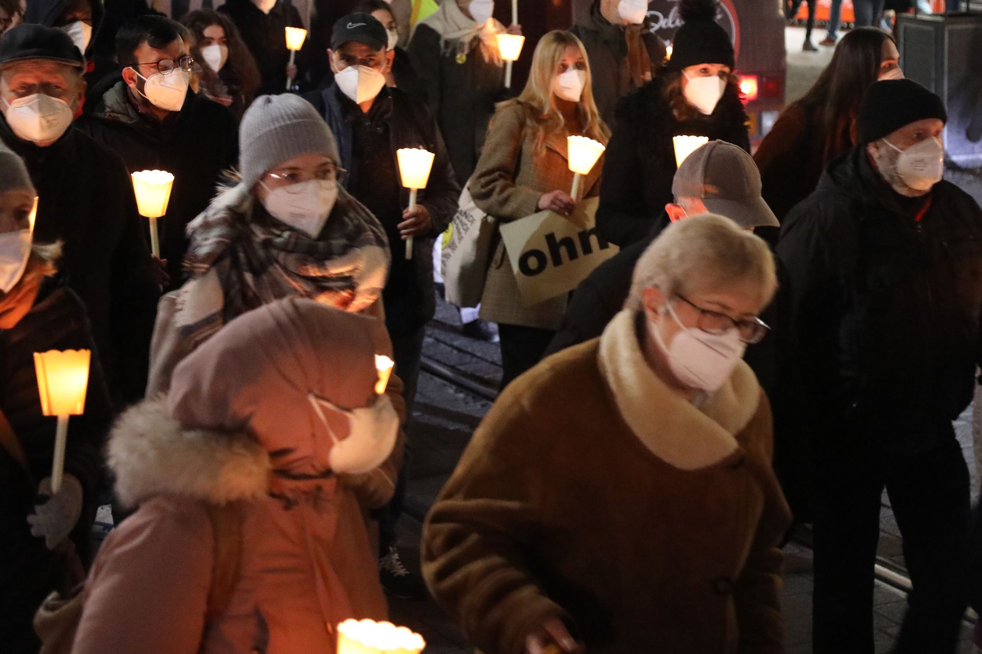 „Wie ist es möglich, dass sich derart viele Menschen auf die Worte, Symbole, den Hass und die gewalttätigen Methoden der Nationalsozialisten beziehen?“, fragte Pfarrerin Angelika Wagner von der Gemeinschaft Sant’Egidio. Die Coronapandemie habe die Welt zerbrechlicher gemacht. Menschen würden mit gelben Sternen oder Punkten durch die Straßen laufen, auf denen „ungeimpft“ stehe, und von einer „jüdischen Weltverschwörung“ reden. „Manche sagen, es sind nur Worte, aber Worte schaffen eine Atmosphäre“, mahnte Wagner. Zugleich würden die Zeitzeugen der Shoah verschwinden. „Wir haben eine enorme Verantwortung gegenüber der Zukunft. Wir müssen die Erinnerung weitergeben“, forderte sie. „Wir wollen die Baumeister und Baumeisterinnen sein einer neuen Kultur des Zusammenlebens.“
