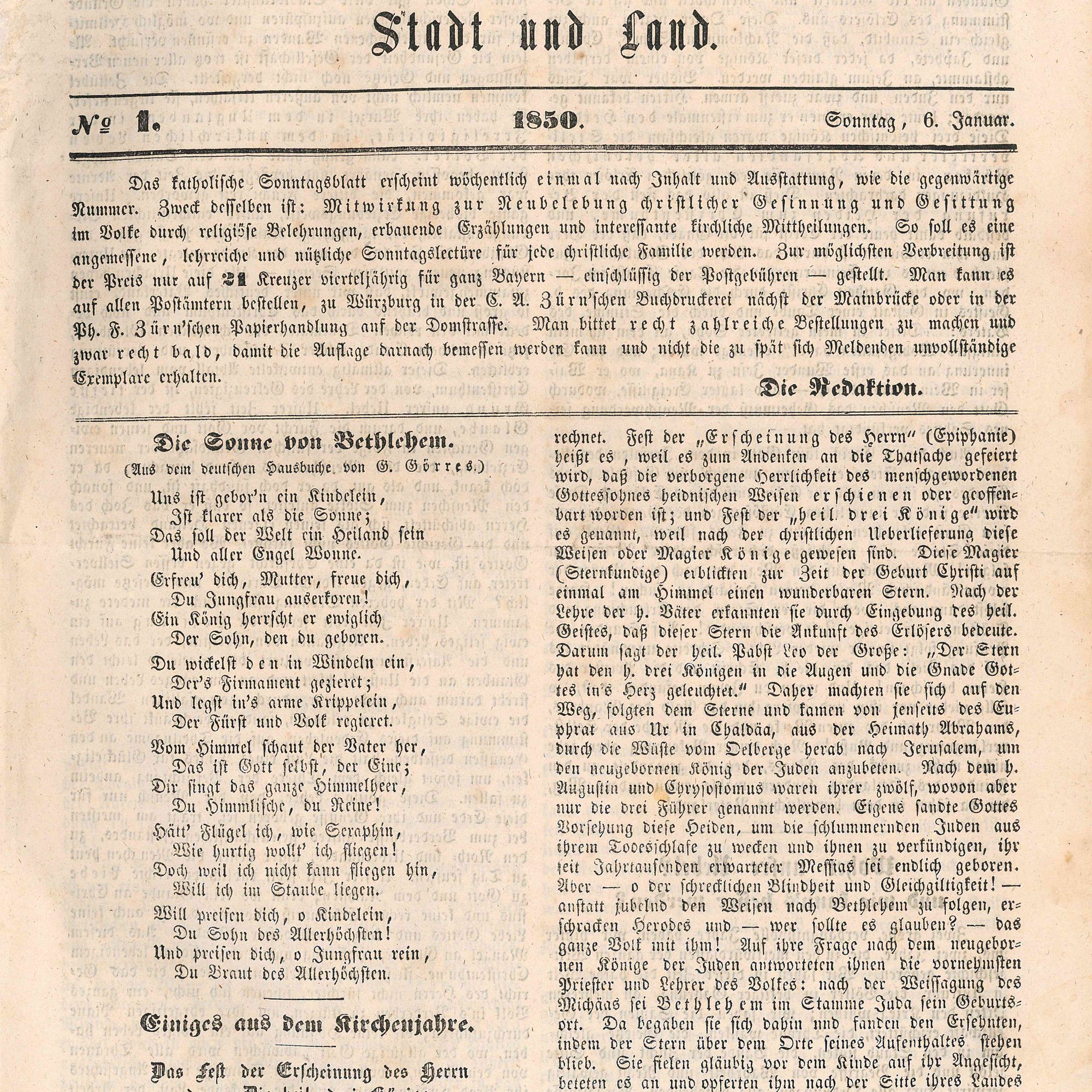 Ruppert: Mit dem ersten Heft hat das Sonntagsblatt heute keine Gemeinsamkeit mehr: In den frühen Heften finden sich erbauliche Texte, einfache Gebete und Gedichte. Ich denke, vieles war zum Vorlesen gedacht, weil es gerade auf dem Land viele Analphabeten gab. Die Autoren waren durch die staatliche Zensur eingeschränkt. Wir haben heute einen hohen journalistischen Anspruch: Kirche kann und darf aus meiner Sicht nichts mehr verschleiern oder beschönigen. Trotzdem ist uns konstruktiver Journalismus wichtig, das bedeutet: Wir schreiben auch über kritische Themen, aber wir fragen immer auch nach Perspektiven und Lösungsansätzen. Vor allem aber berichten wir über die vielen engagierten Menschen im Bistum, über tolle Projekte, mutige Konzepte und die täglichen Erfolge, die es in den Gemeinden gibt.