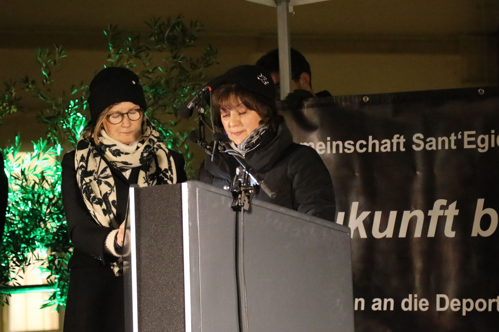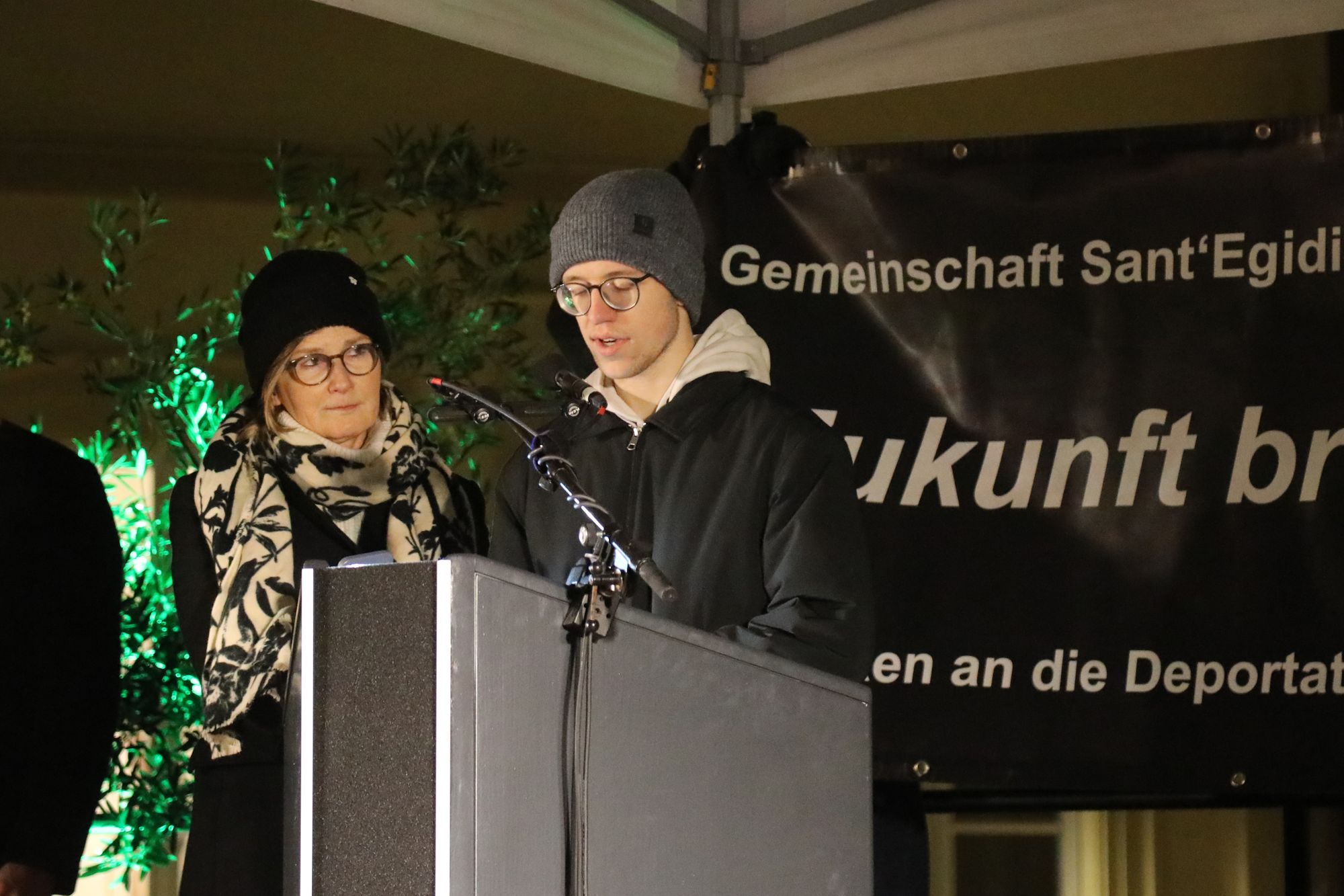 „Ich habe in den letzten Tagen viel darüber nachgedacht, was Geschichte eigentlich für uns bedeutet“, sagte Noah Wunderlich von der Jugendorganisation von Sant'Egidio. Geschichte sei nicht einfach vorbei, sie frage: „Was macht ihr heute? Wofür steht ihr ein?“ Es liege auch an den Jugendlichen, ob die Zukunft dunkel oder hell werde. Dafür brauche es den Mut, nicht wegzuschauen, zu vergeben und einander zu respektieren. Nicht nur an die Geschichte zu erinnern. „Lasst sie uns als Warnung verstehen und als Motivation, es besser zu machen“, plädierte Wunderlich. „Das sind wir den Menschen schuldig, die damals alles verloren haben, und auch uns selbst.“ Anna von Egidy las aus dem Buch „Und doch ein ganzes Leben“ der Auschwitz-Überlebenden Helga Weiss vor. Darin erinnerte sich Weiss, wie sich Kinder vor den Gaskammern in fremde Baracken flüchteten und alle in Todesangst auf die Schüsse draußen lauschten: „Ich dachte, das ist das Ende.“ Und wie eines Morgens die Rufe „Frieden! Frieden!“ durch das Lager hallten – „wir haben es geschafft, wir haben den Krieg überlebt“.