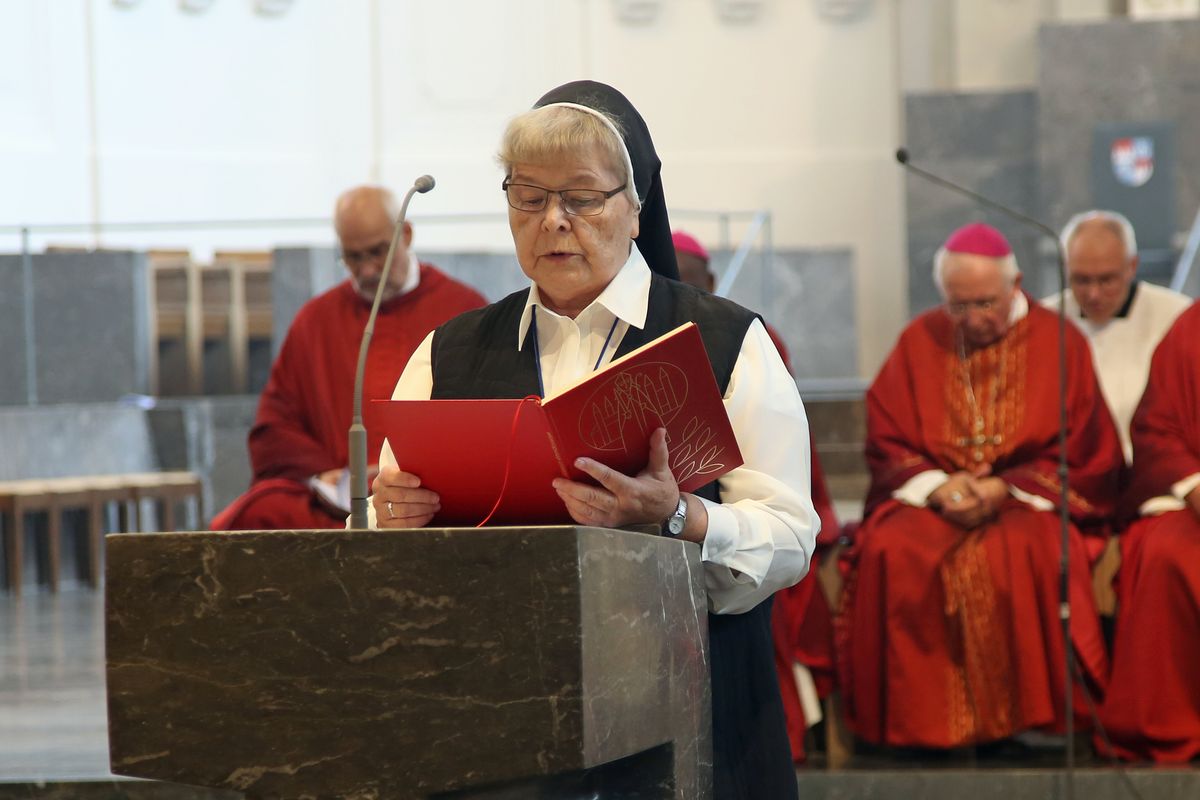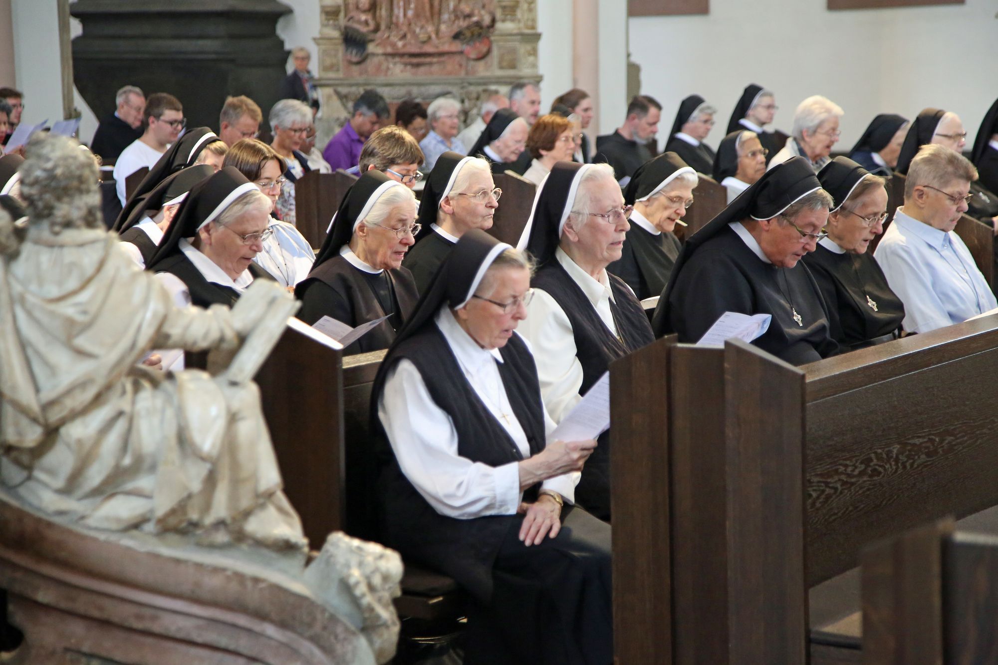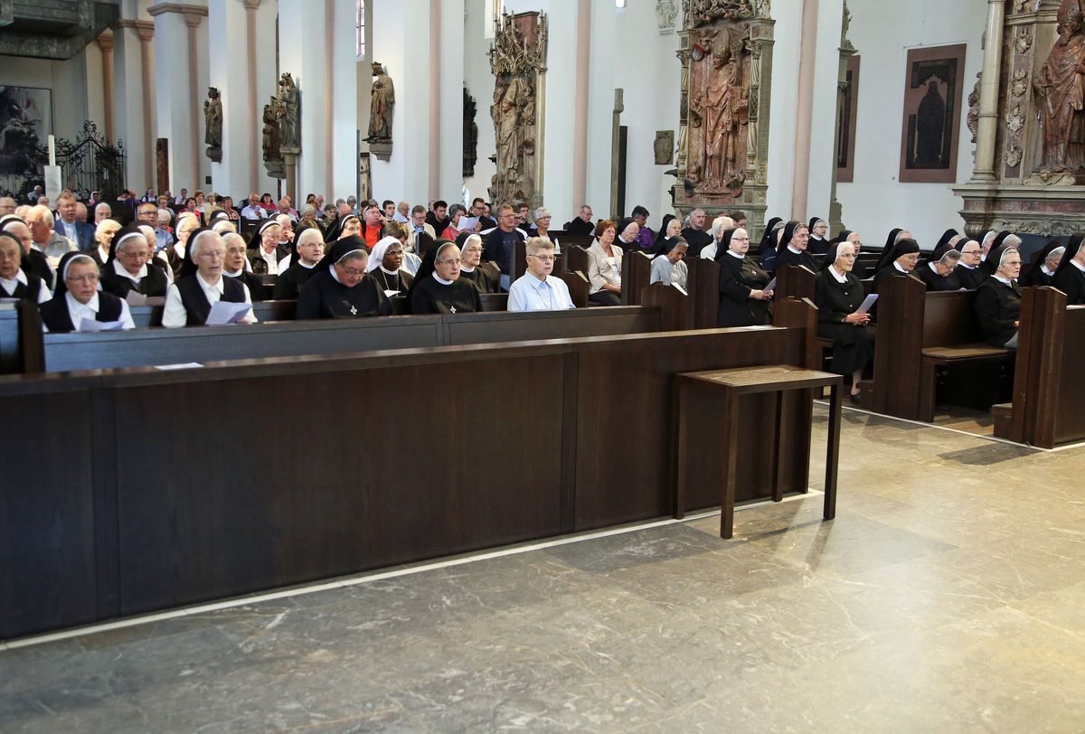Über die Jahrhunderte sei für das Kiliansevangeliar ein prächtiger Einband aus Elfenbein, goldenem Metall und Edelsteinen entstanden. Die alte Handschrift dagegen sei ohne Bilder und Schmuck, nur mit einigen Kommentaren am Rand und zwischen den Zeilen. „So schön der Buchdeckel sein mag, er ist und bleibt Ballast. So schmal und gering das Buch selbst erscheint, der Text ist das Entscheidende.“ Geistliche Erneuerung in der Kirche geschehe da, wo man auf Christus schaue, betonte Weihbischof Boom und erinnerte an das Motto der Kiliani-Wallfahrtswoche: „Denn Gott hat uns nicht einen Geist der Verzagtheit gegeben, sondern den Geist der Kraft, der Liebe und der Besonnenheit.“ Was Paulus hier dem Timotheus rate, seien letztlich die Evangelischen Räte: Armut, Jungfräulichkeit und Gehorsam. „Nicht das, was wir alles sind und haben, unser Vermögen, gibt uns Kraft, sondern der Geist der Kraft, der von Gott kommt. Gottes Geist der Liebe führt über unsere engen Räume und begrenzte Zeit hinaus“, erläuterte der Weihbischof. Gottes Geist der Besonnenheit helfe beim Fortschreiten.