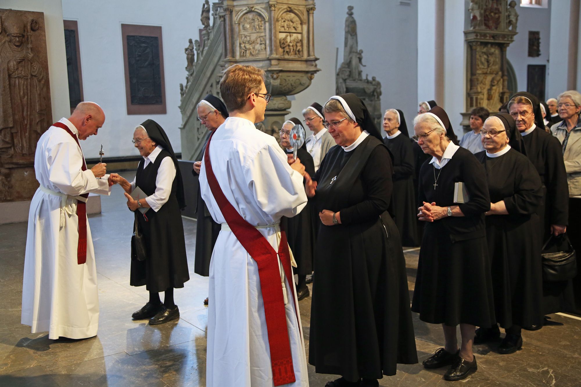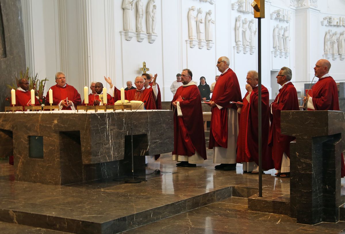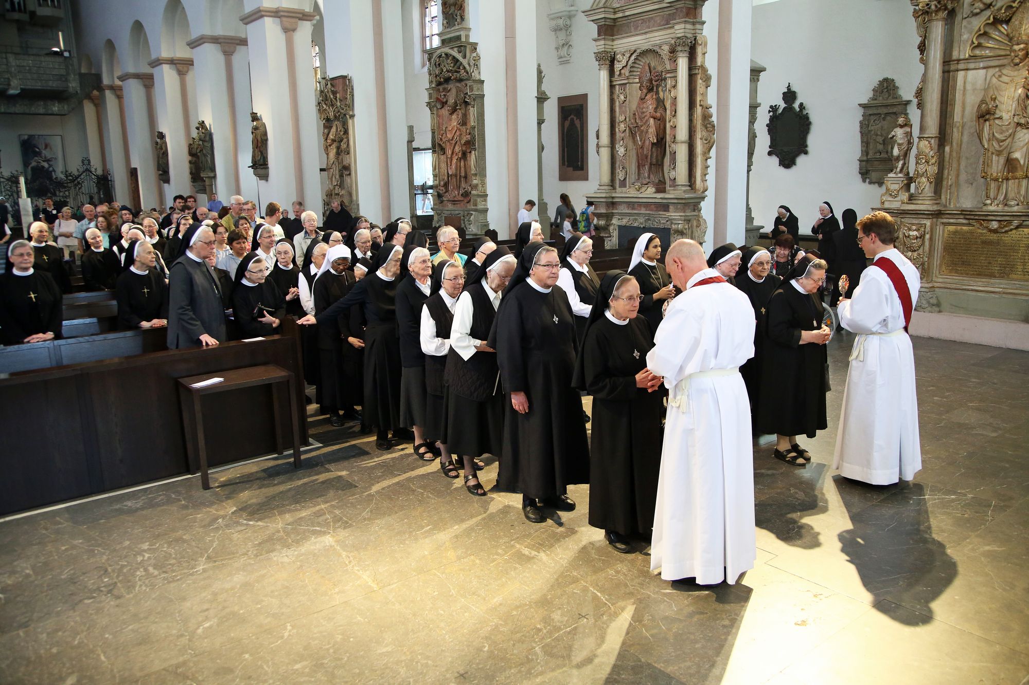 Würzburg (POW) Mit rund 250 Ordensleuten, Missionaren und Gläubigen, darunter auch acht Missionare aus der ganzen Welt, hat Weihbischof Ulrich Boom am Mittwoch, 10. Juli, den Kiliani-Tag der Orden und Missionare gefeiert. Ordensleute und Missionare seien berufen, den Menschen in Taten und Worten Gottes Liebe vorzuleben, sagte der Weihbischof beim Pontifikalgottesdienst im Würzburger Kiliansdom. „Gott liebt uns und zeigt uns seine Liebe in Jesus Christus.“ In seiner Predigt ermutigte der Weihbischof die Gläubigen dazu, sich nicht von Äußerlichkeiten blenden zu lassen, sondern auf den Inhalt und auf die Worte Jesu zu schauen.