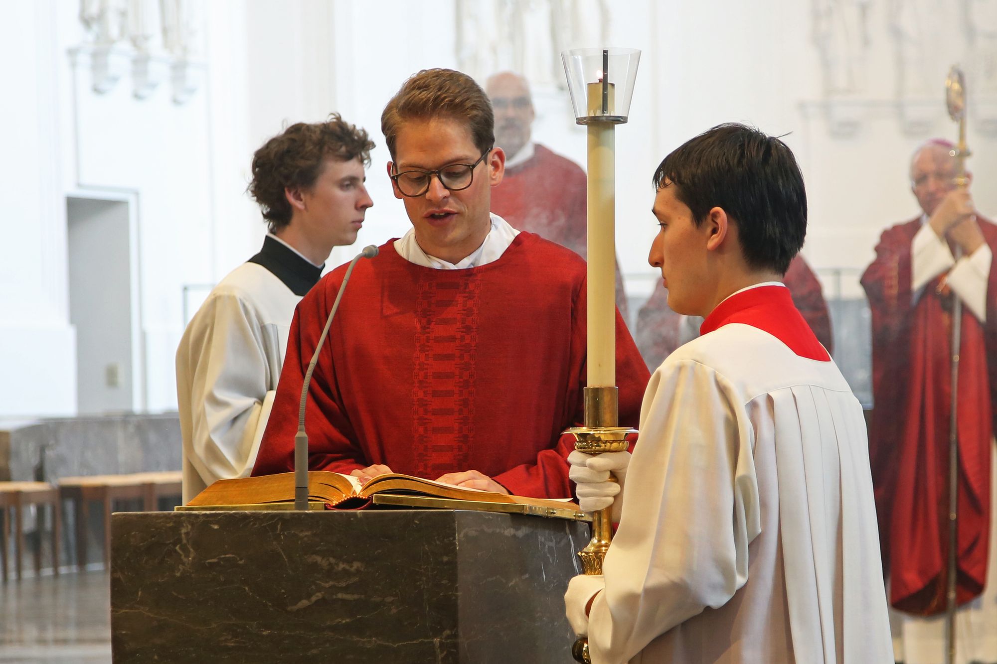 Wie bei den Jüngern im schlingernden Boot aus dem Matthäusevangelium könne es auch heute Gegenwind geben. „Wir selbst halten bisweilen Christus vielleicht für ein Gespenst. Wir haben den Mut des Petrus und merken aber plötzlich, dass wir keinen Boden unter den Füßen haben“, fuhr der Weihbischof fort. Doch nicht die Absicherung durch Strukturen und Finanzen sei der Boden unter den Füßen, sondern Gott. „Lassen wir uns nicht vom Einband, vom Gold und Elfenbein blenden, und blenden wir nicht selbst, sondern schauen wir nach dem Inhalt, nach dem Wort, das ewig hält, was es verspricht: Ich bin da für euch, ich bin bei euch in Zeit und Ewigkeit.“
