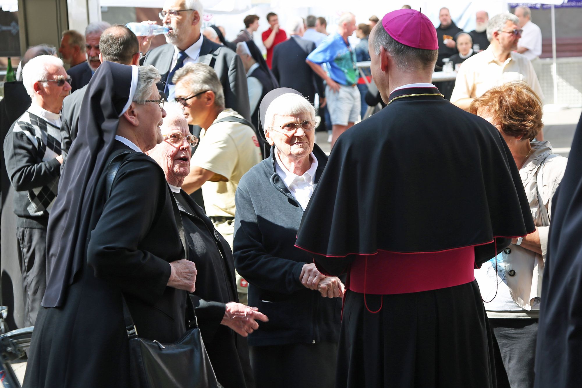 Die anschließende Begegnung auf dem Kiliansplatz nutzten viele Ordensleute und Gläubige, um miteinander sowie mit Weihbischof Boom und Bischof Dr. Franz Jung ins Gespräch zu kommen.