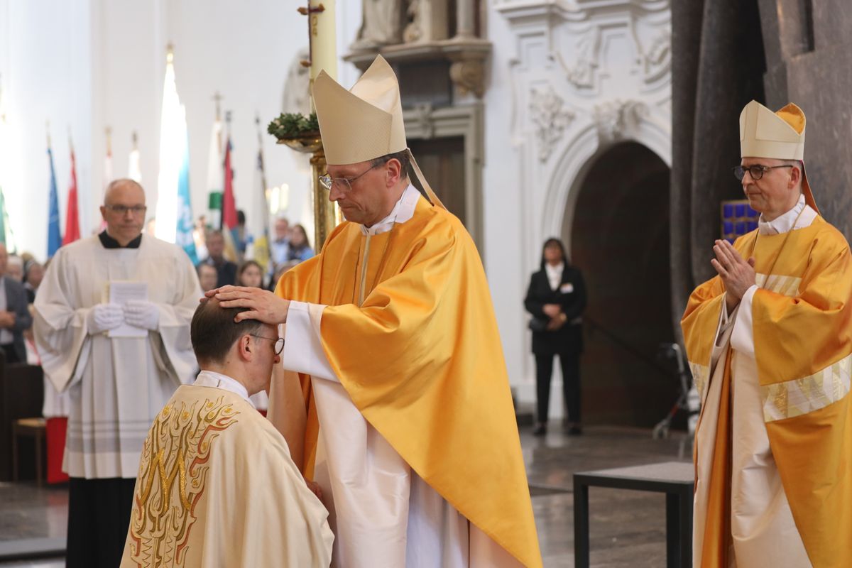 Bei der Litanei mit Anrufung der Heiligen lag der Weihekandidat als Zeichen der Demut und der Verfügbarkeit ausgestreckt am Boden. Danach weihten ihn Bischof Jung, Erzbischof Gössl und Bischof em. Hofmann durch Handauflegung und Gebet zum Bischof. Alle weiteren anwesenden Bischöfe legten ebenfalls in Stille die Hände auf und machten so die Einheit des Episkopats der Kirche deutlich. Das Weihegebet sprachen alle Bischöfe. Sie baten dabei um die für das Bischofsamt notwendigen Gaben.