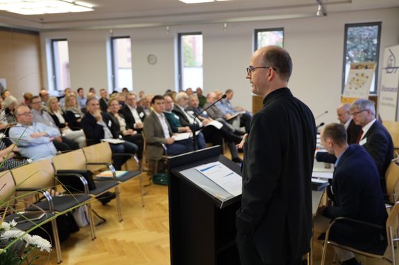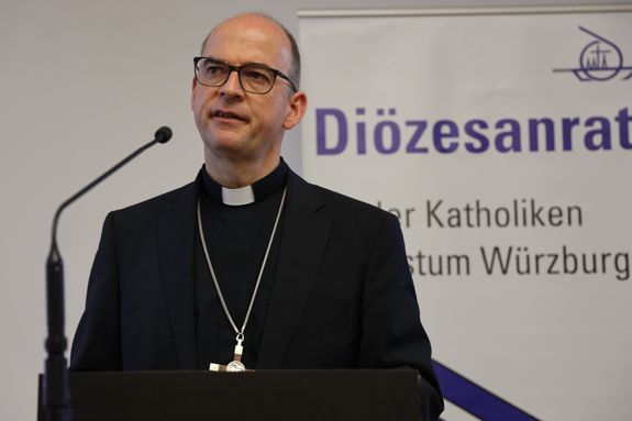 Beim Prozess "Pastoral der Zukunft" setzt der Bischof auf einen geordneten Verlauf. „Anhand eines Kriterienkatalogs wird in den Dekanaten die Sinnhaftigkeit der neuen Einheiten überprüft“, erläuterte er. Die zuständigen Gremien sollten dann mindestens mit einer Zweidrittelmehrheit dafür stimmen, andernfalls werde der Bischof den Zuschnitt festlegen. „Zum 24. Oktober 2020 wird dieser Prozess abgeschlossen sein“, erklärte Bischof Jung. Das schließe auch mit ein, dass bis dahin einheitliche pastorale Standards festgelegt sein und die Rätestruktur an die neuen Einheiten angepasst werden müssten. „Das ist ein ambitioniertes Unterfangen, permanentes Nachbessern wird nötig sein“, sagte der Bischof. Außerdem wolle er die Entlastung der Pfarrer bei der Verwaltung weiter voranbringen. Das könne womöglich auch durch eine engere Vernetzung von Diözesanbüros und Caritas geschehen, ohne dass dafür neue Stellen geschaffen werden müssen. Er selbst plane künftig nur noch neun Dekanate, die identisch mit den Landkreisgrenzen verlaufen.